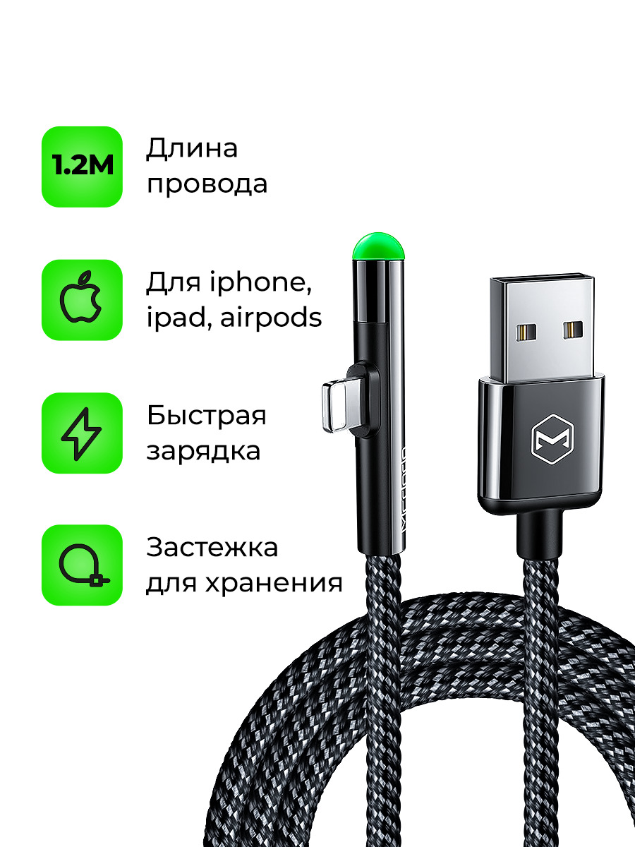 Кабель Mcdodo ca-6270 (Apple Lightning) поддержка быстрой зарядки 1.2 м черный