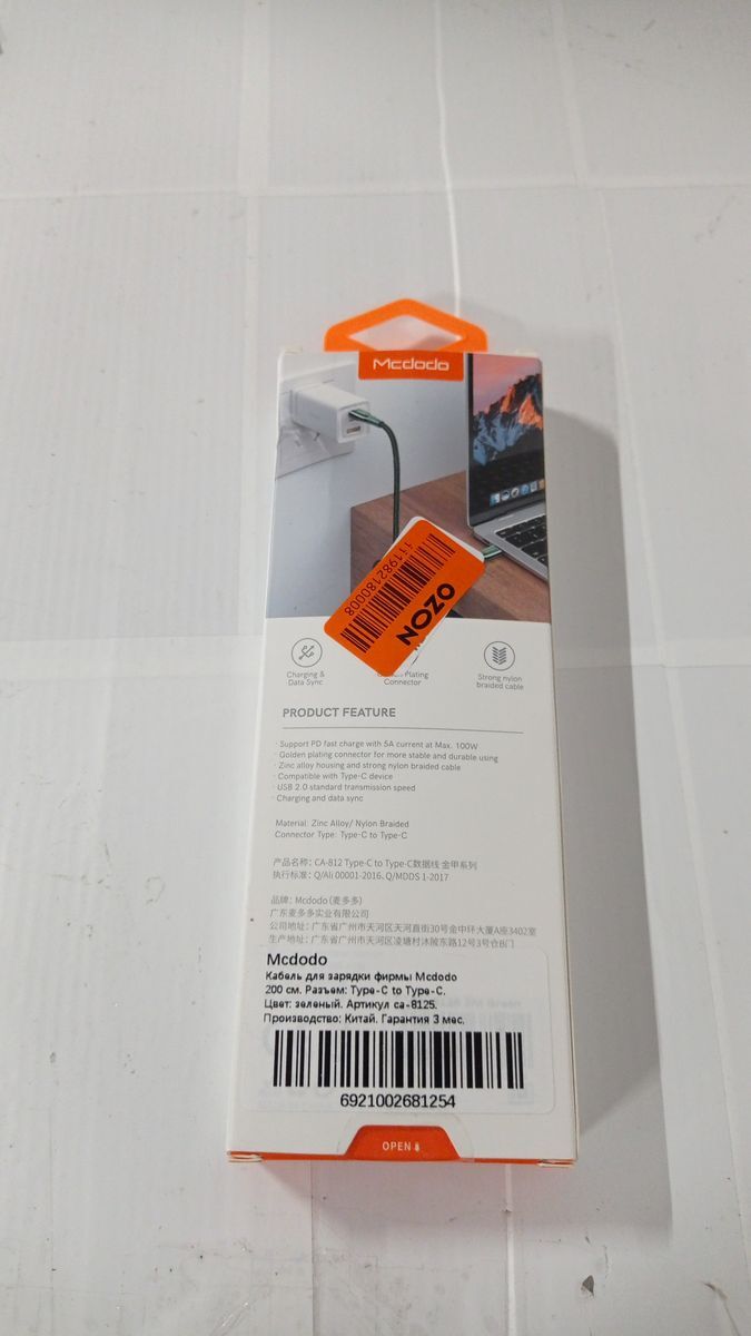 Кабель Mcdodo ca-8125 (Type-C to Type-C) 5А для быстрой зарядки, 2 М зеленый. Уцененный товар