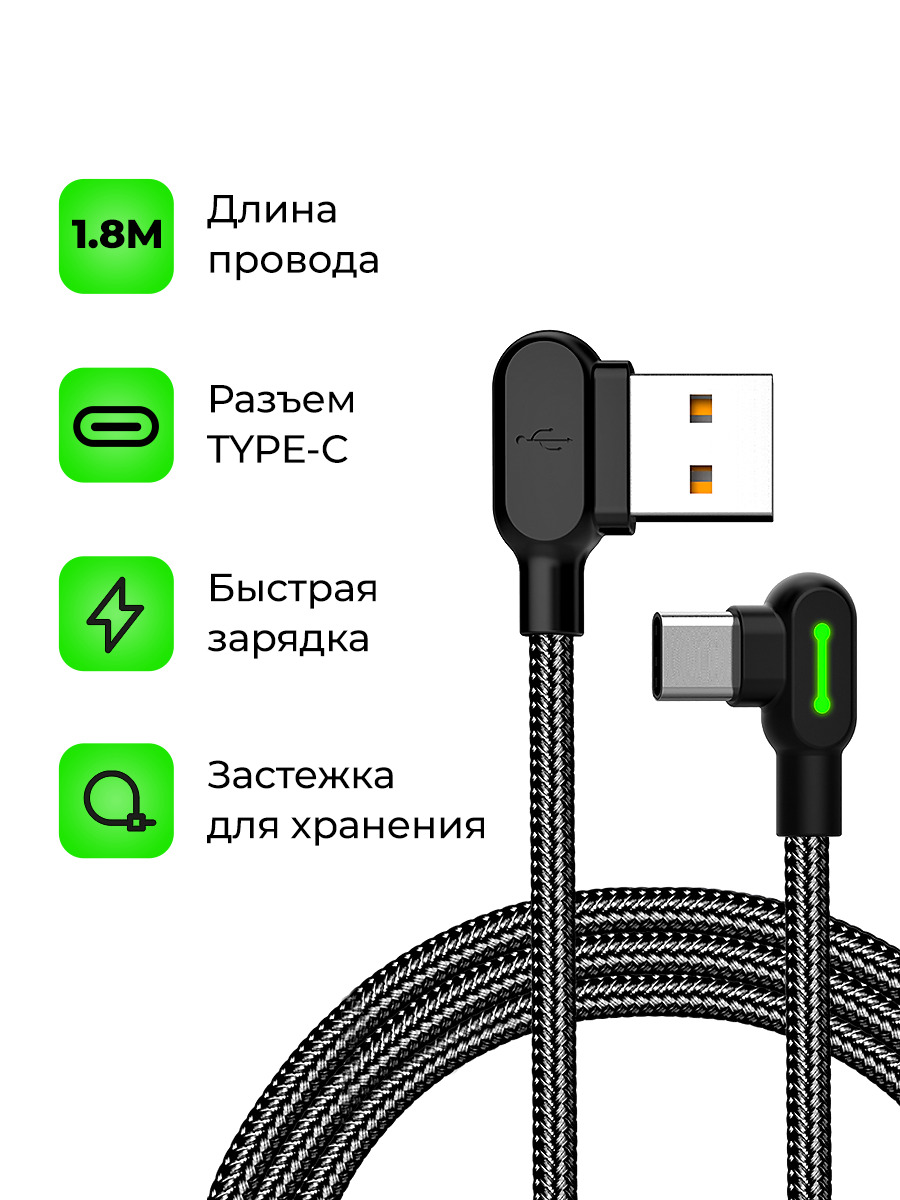 Кабель Mcdodo ca-6420 (Type-C) 2.4А поддержка быстрой зарядки, 1.8 М черный