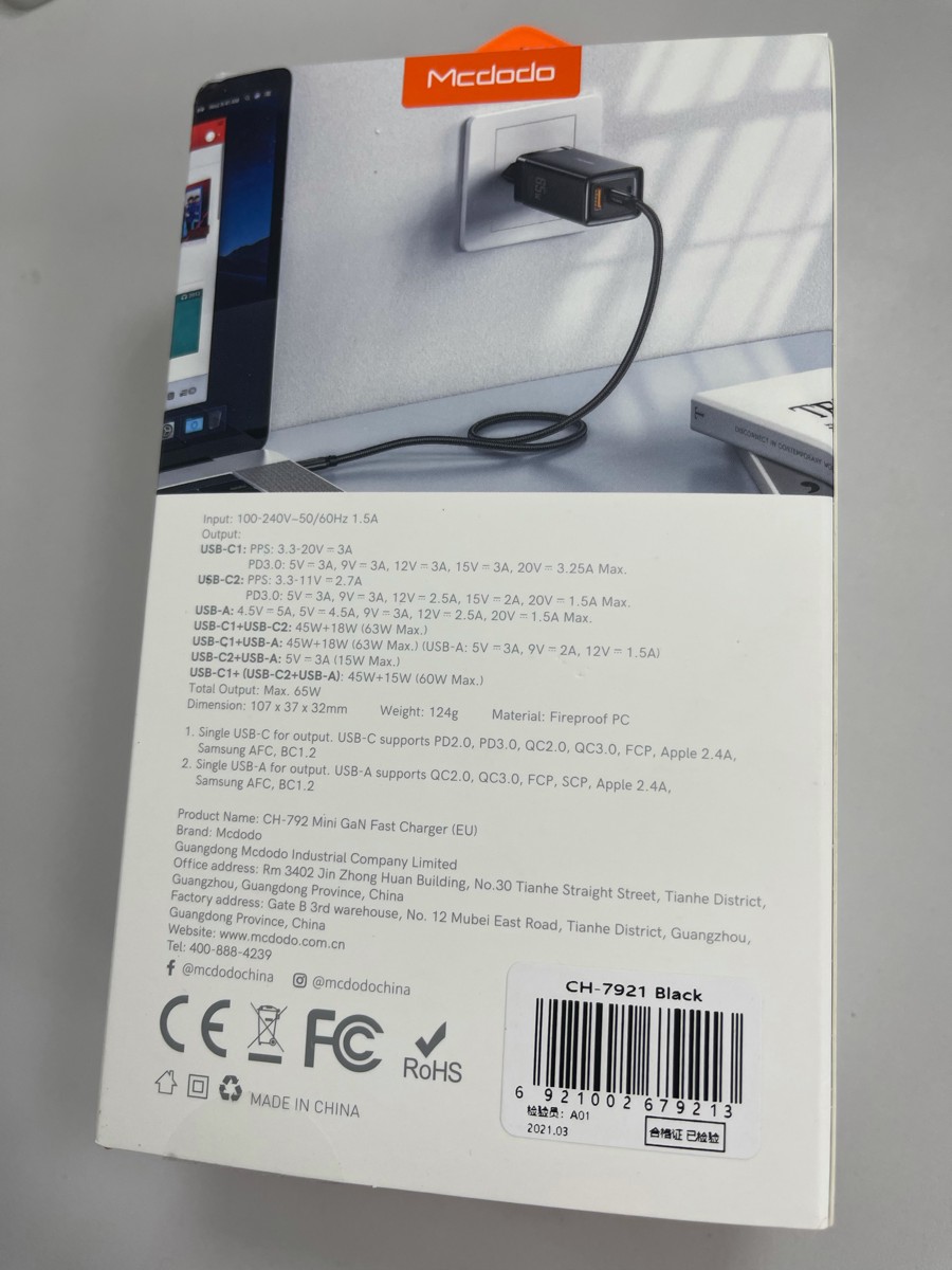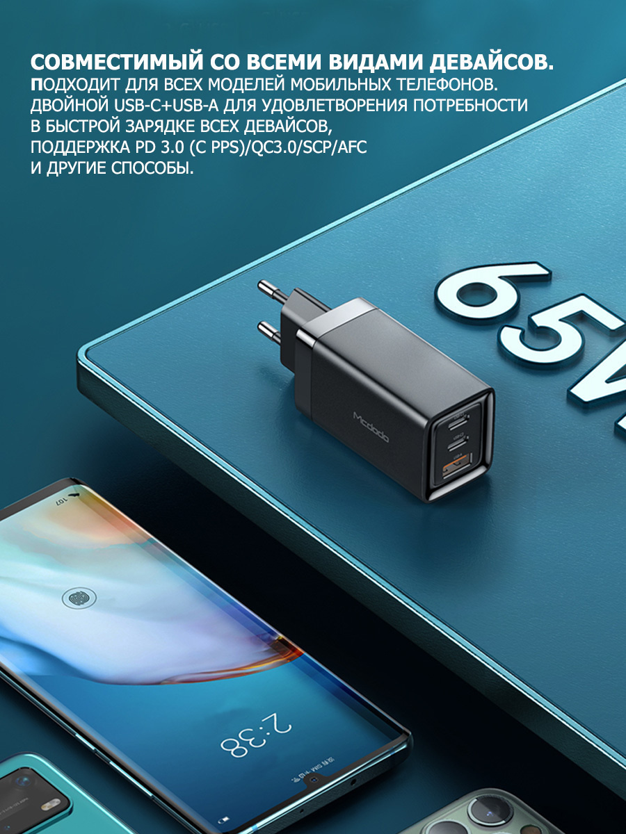 Сетевое зарядное устройство Mcdodo 65W GaN Mini Fast Charger,PD 3.0 CH-7920, белый