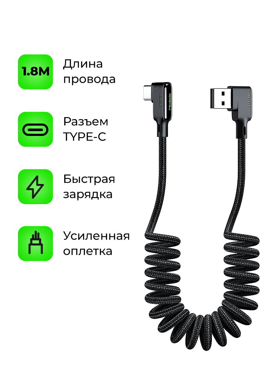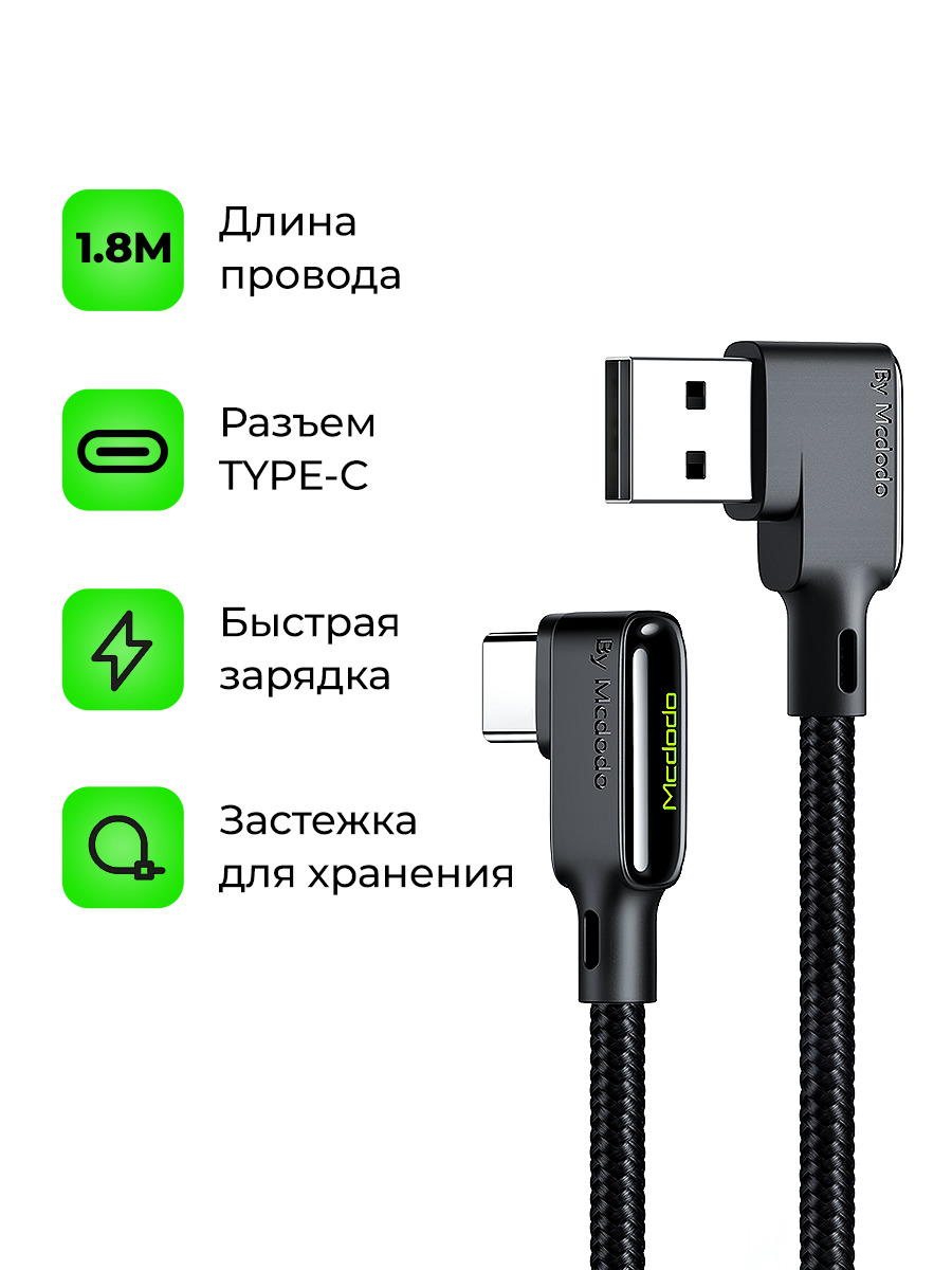Кабель Mcdodo ca-7521 (Type-C) поддержка быстрой зарядки QC 4.0, 1.8 М черный