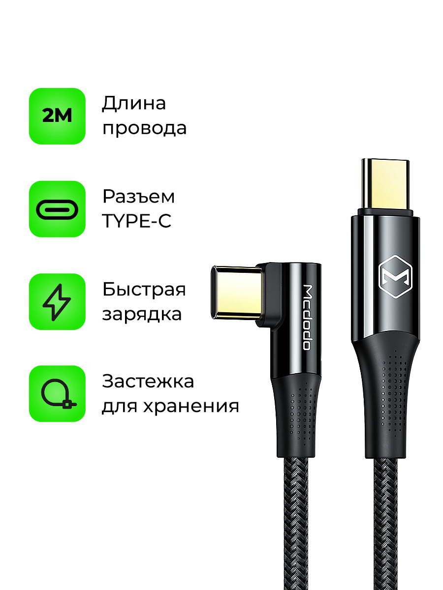 Кабель Mcdodo ca-6391 (Type-C) поддержка быстрой зарядки QC 3.0, 2 М черный