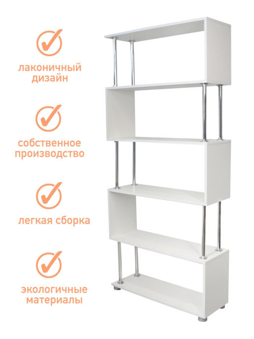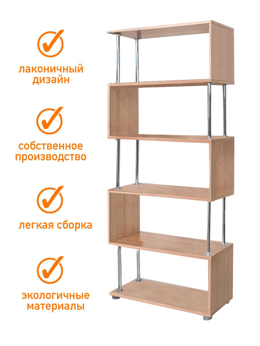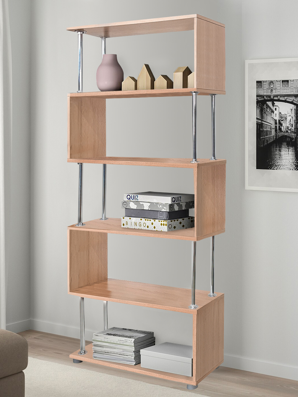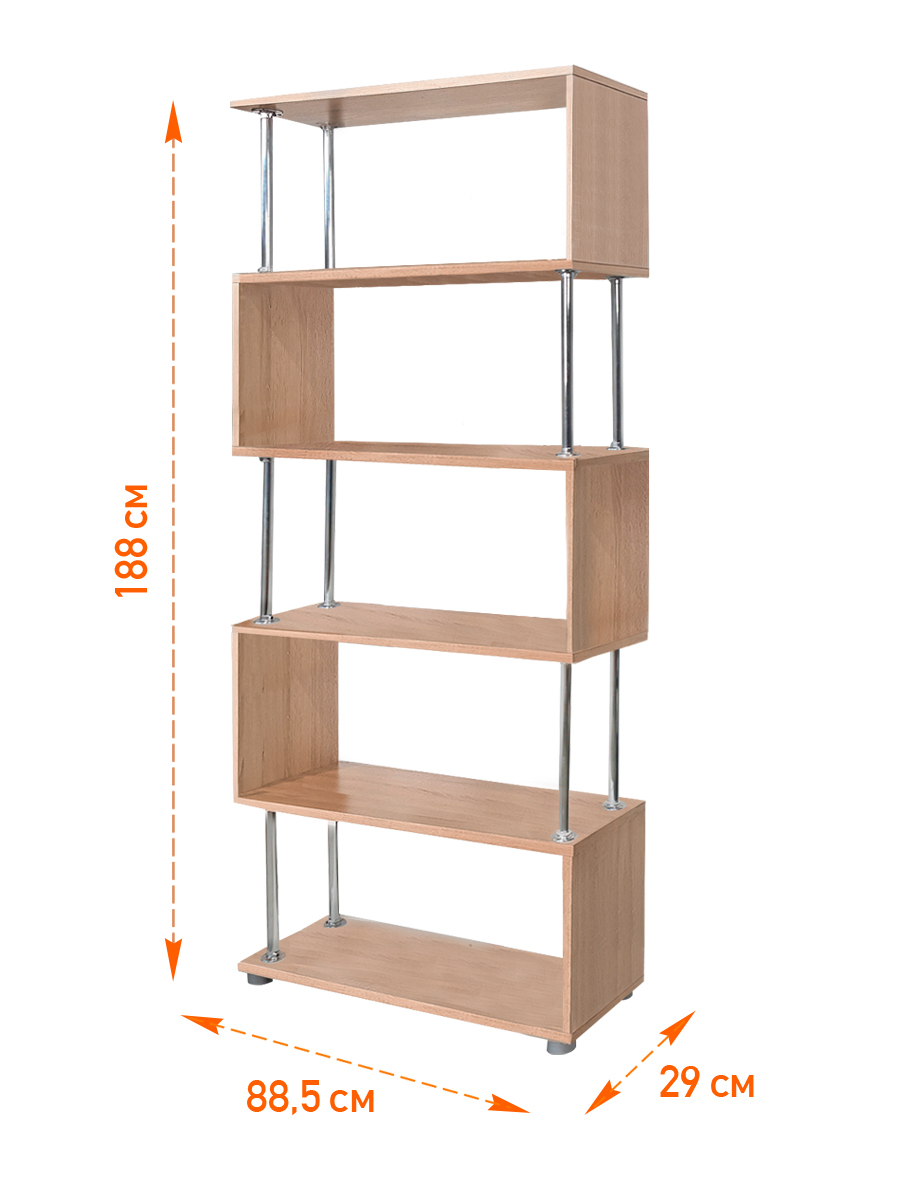 Стеллаж ЗигЗаг с трубами, Дуб Сонома, 88.5х29х188 см, мебель