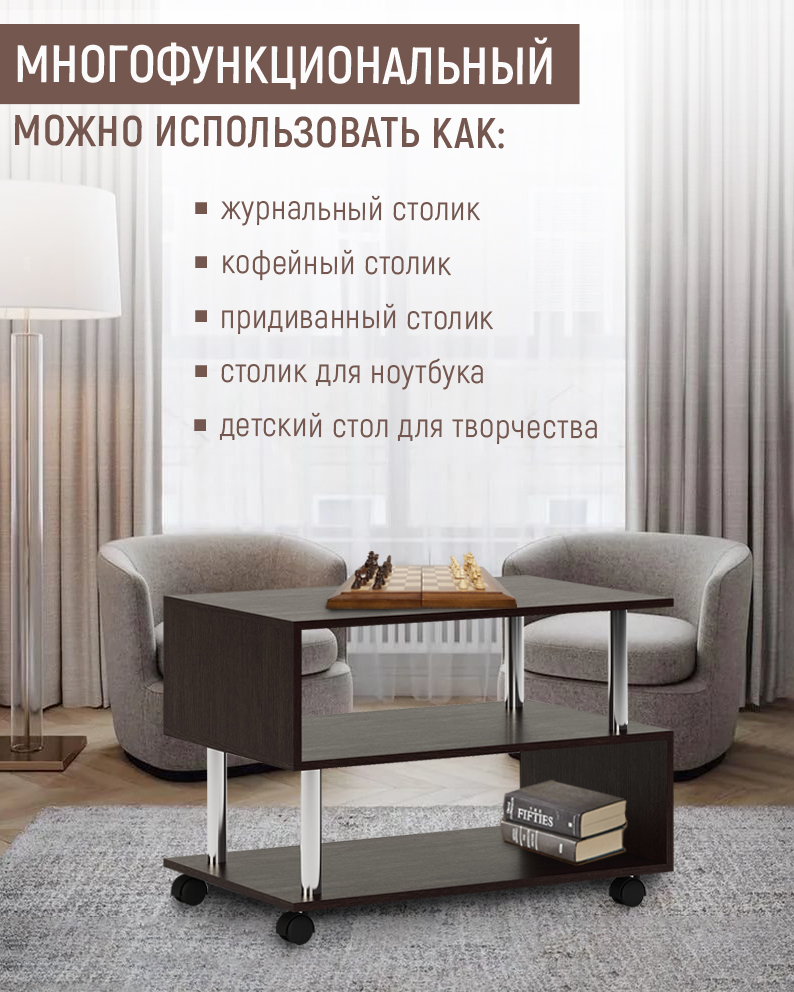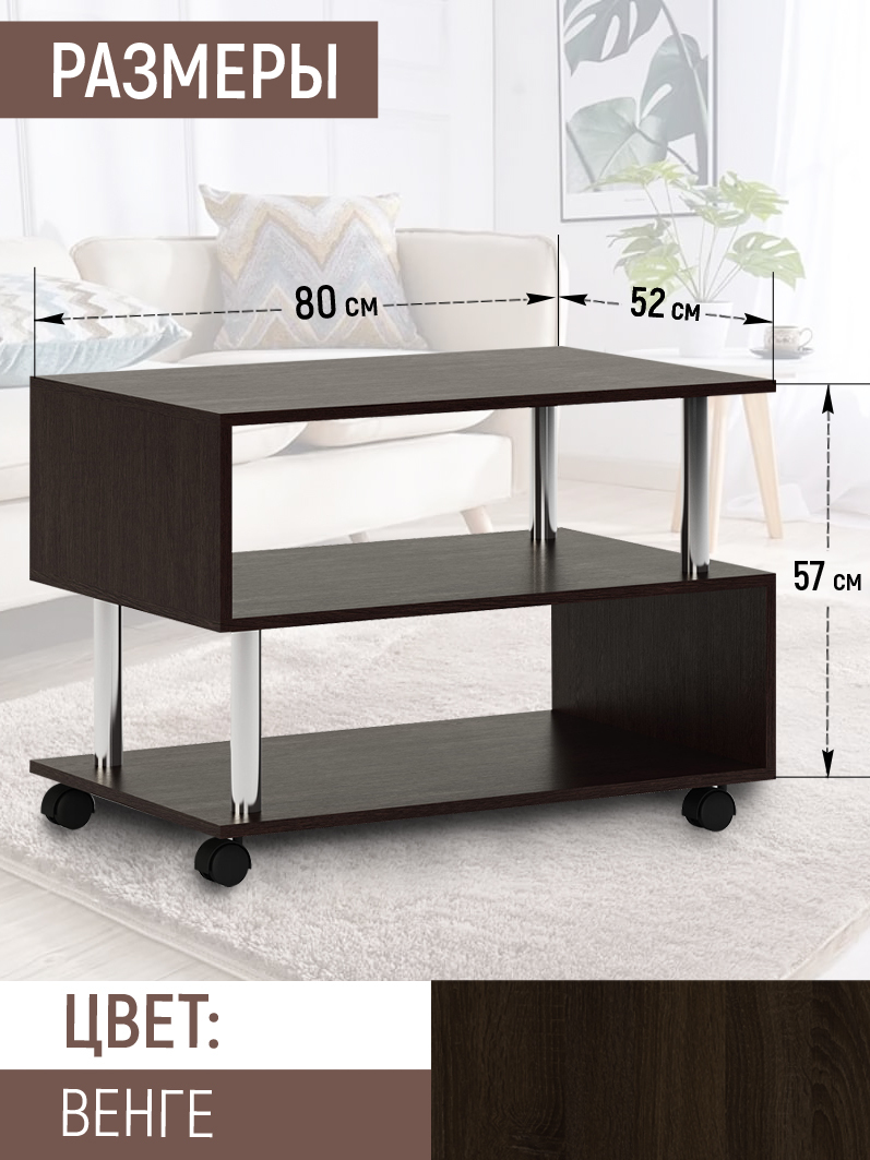 Журнальный стол мебель Стол СТЕП, Венге, 80х52х57 см