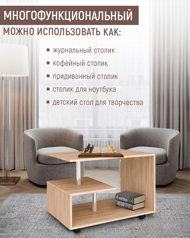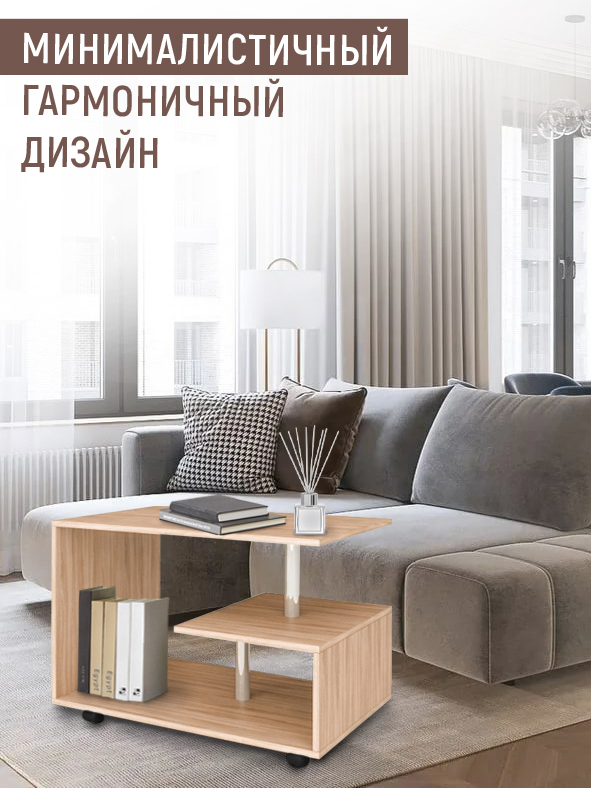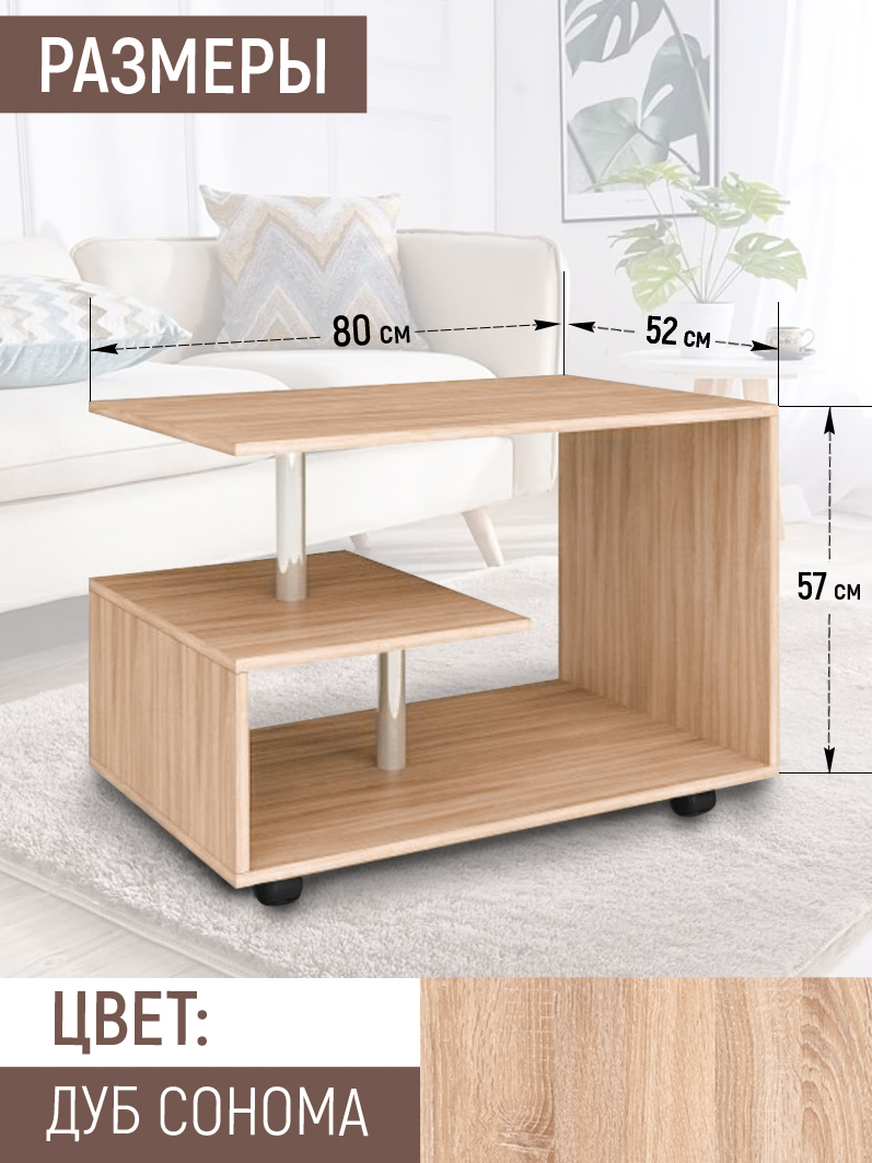 Журнальный стол мебель Дарио, Дуб Сонома, 80х52х57 см
