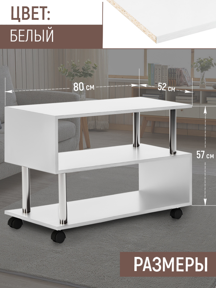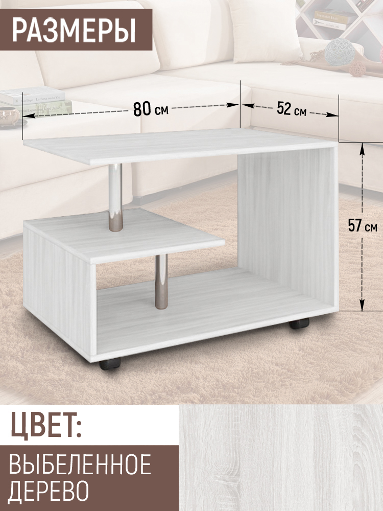 Журнальный стол мебель Стол Дарио, Выбеленое Дерево, 80х52х57 см
