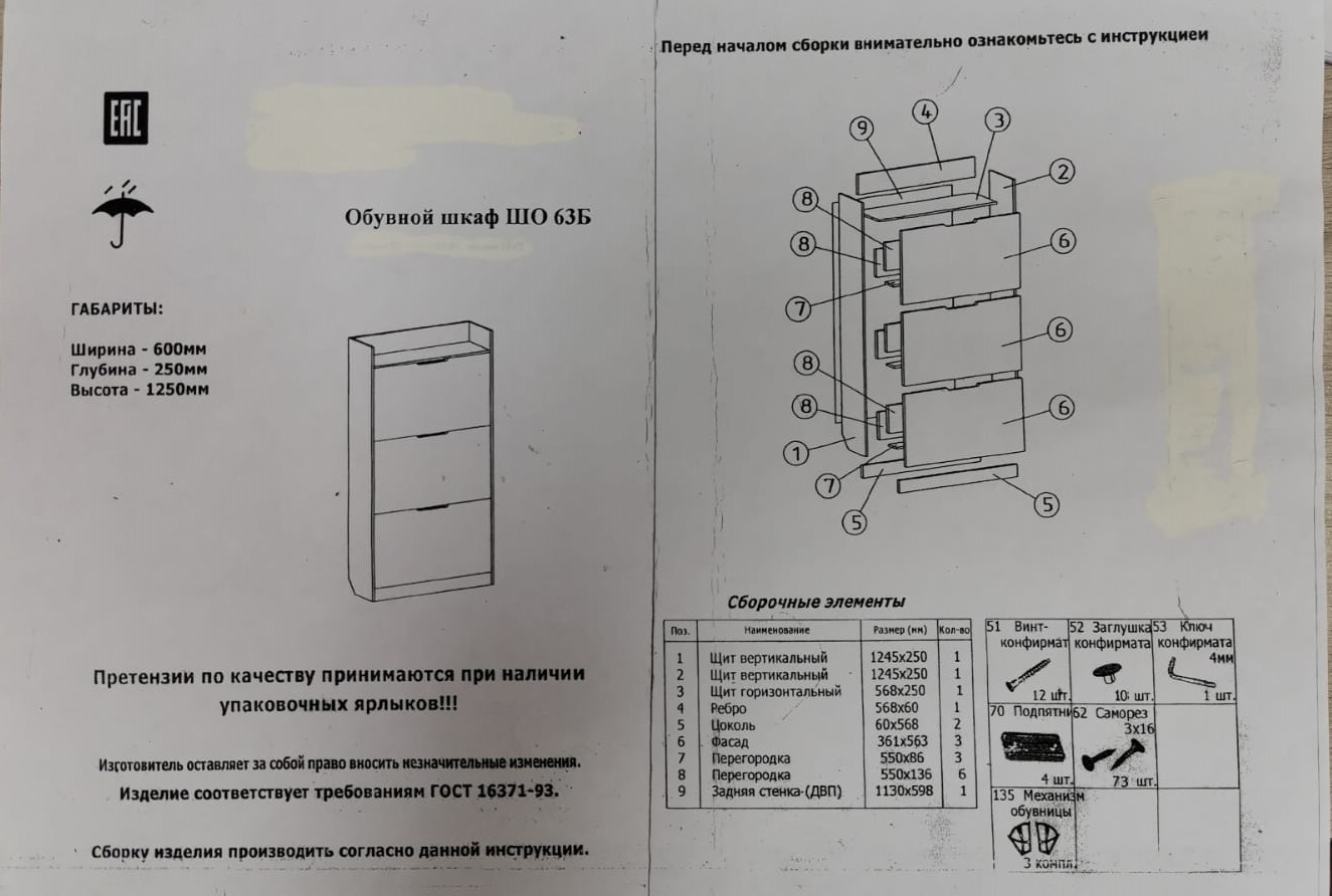Обувница Дуб Закрытая с тремя отсеками, ЛДСП, 25,5х60х125 см