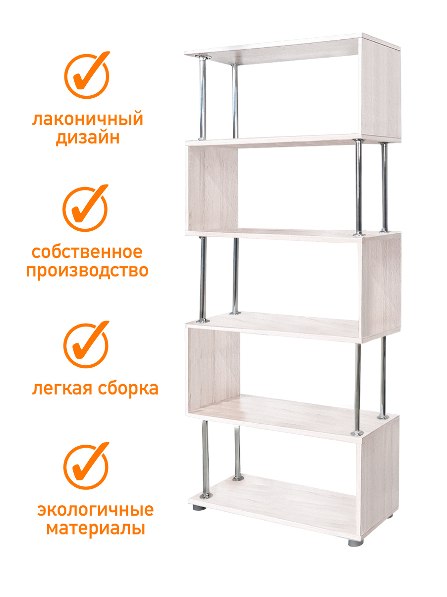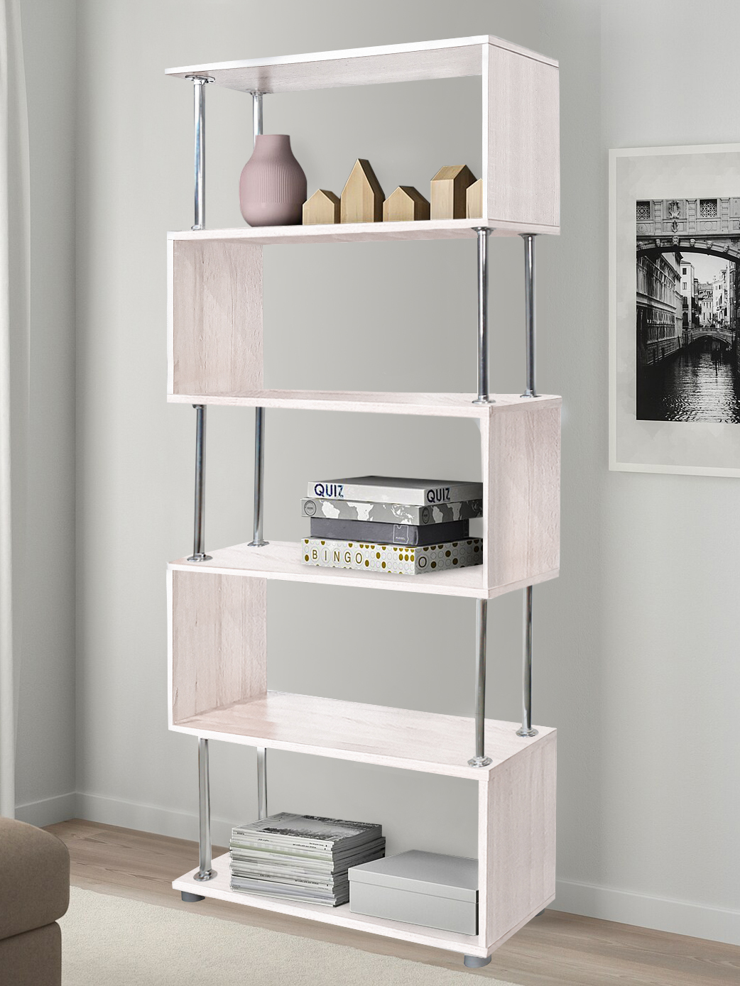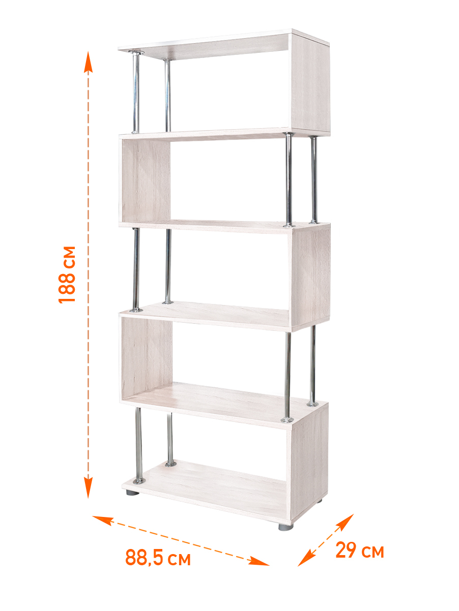 Стеллаж ЗигЗаг с трубами, Выбеленое Дерево, 88.5х29х188 см, мебель