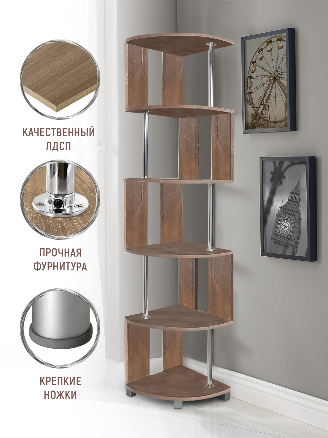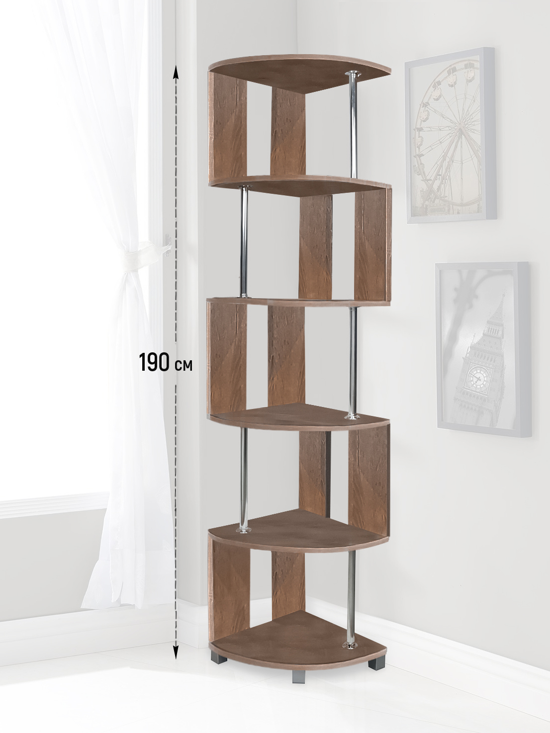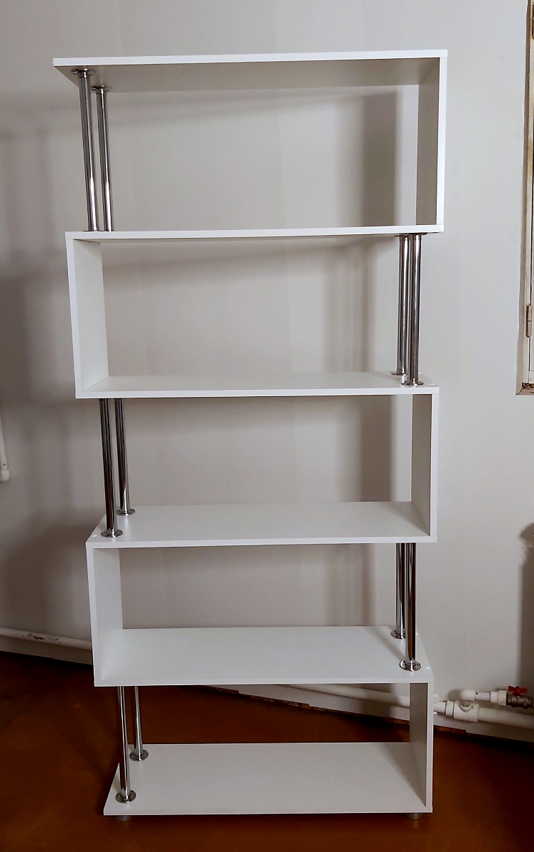 Стеллаж ЗигЗаг с трубами, Выбеленое Дерево, 88.5х29х188 см, мебель