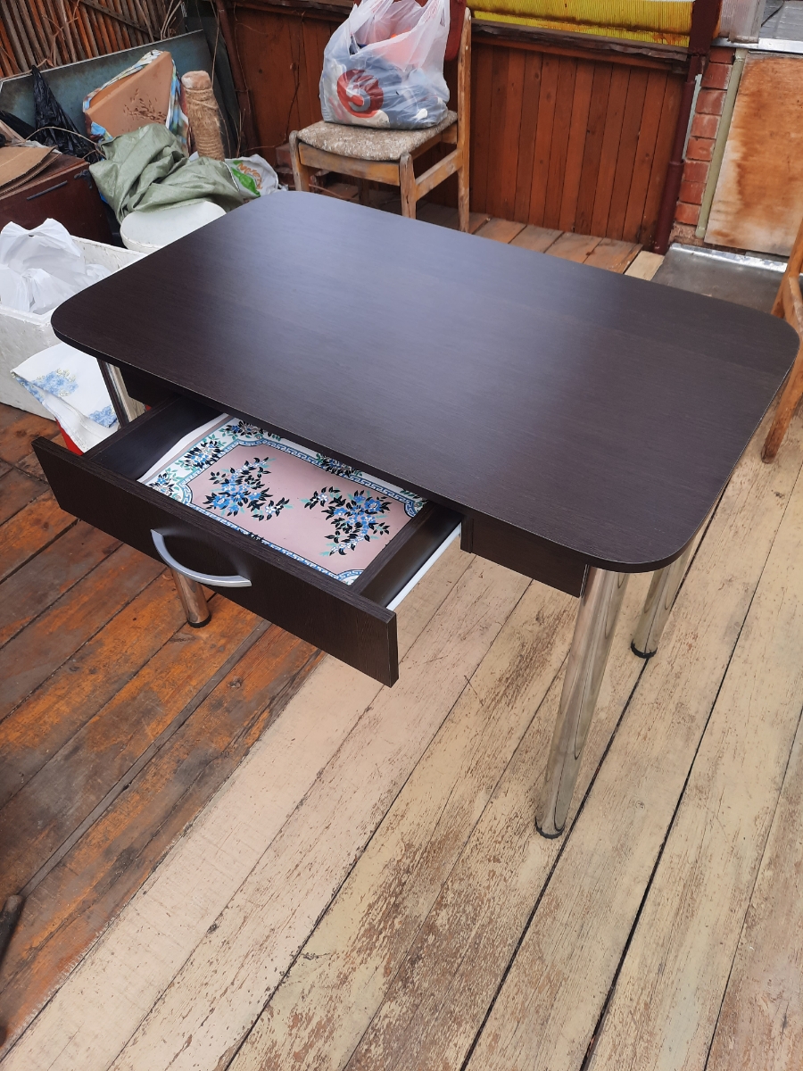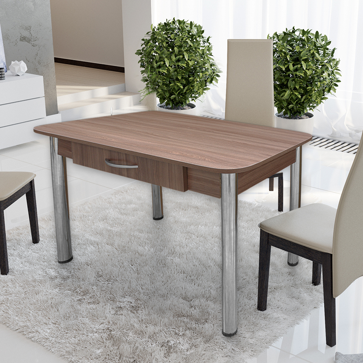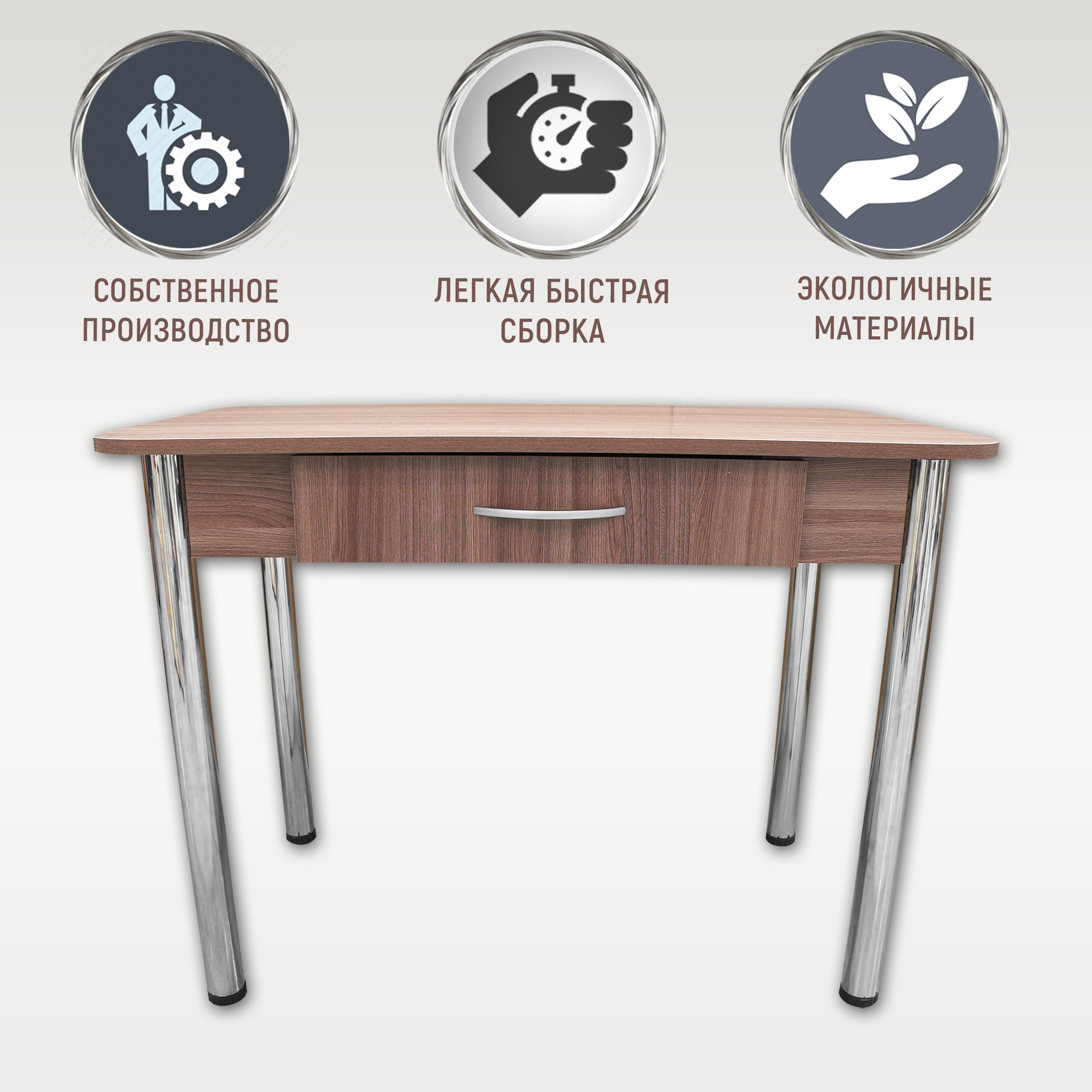 Стол обеденный Нераскладной Кухонный с ящиком на хром ногах, 100х60х75 см