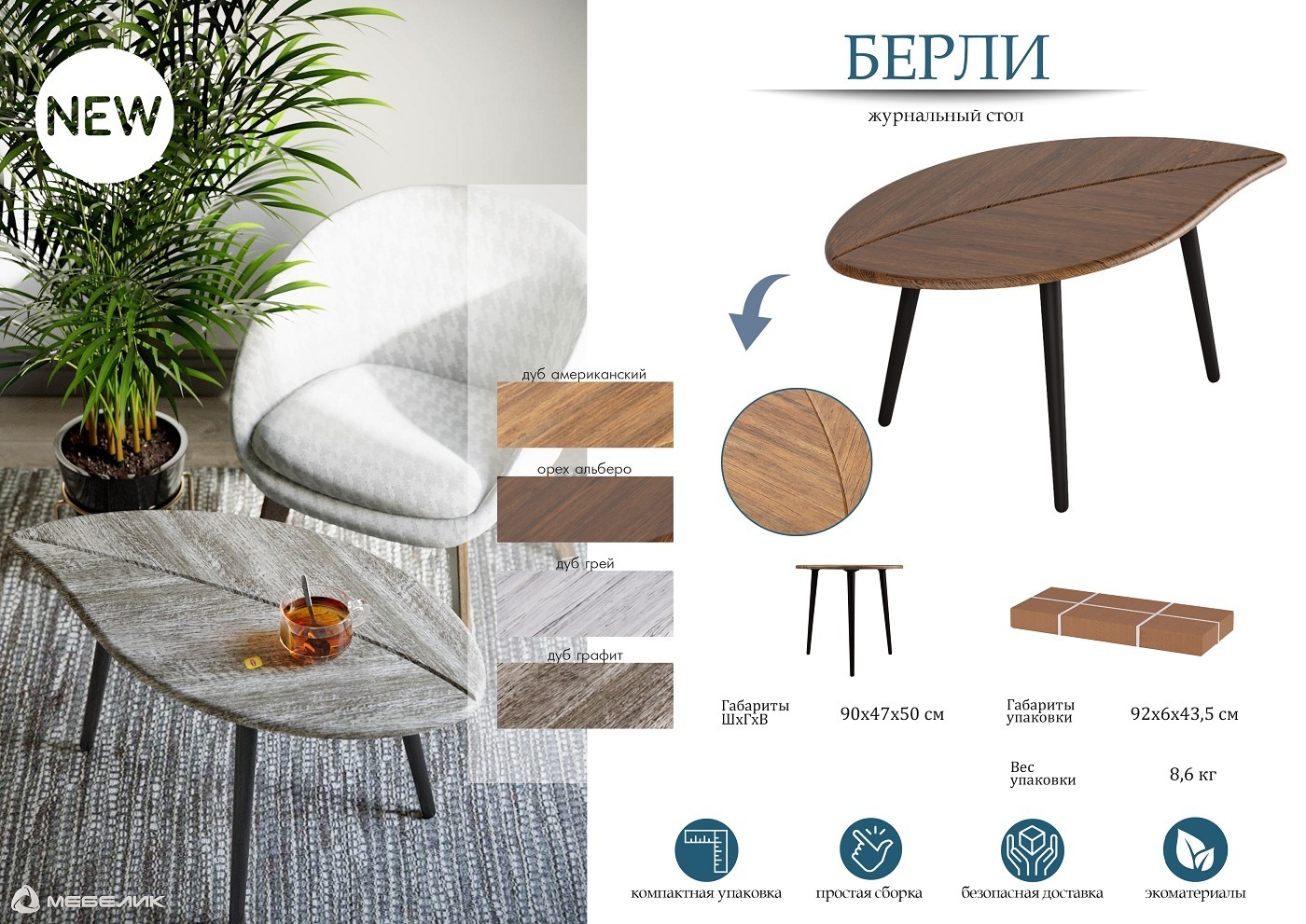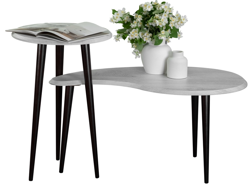 Журнальный стол, Приставной столик Мебелик Берли дуб грей/черный, 90х50х47 см
