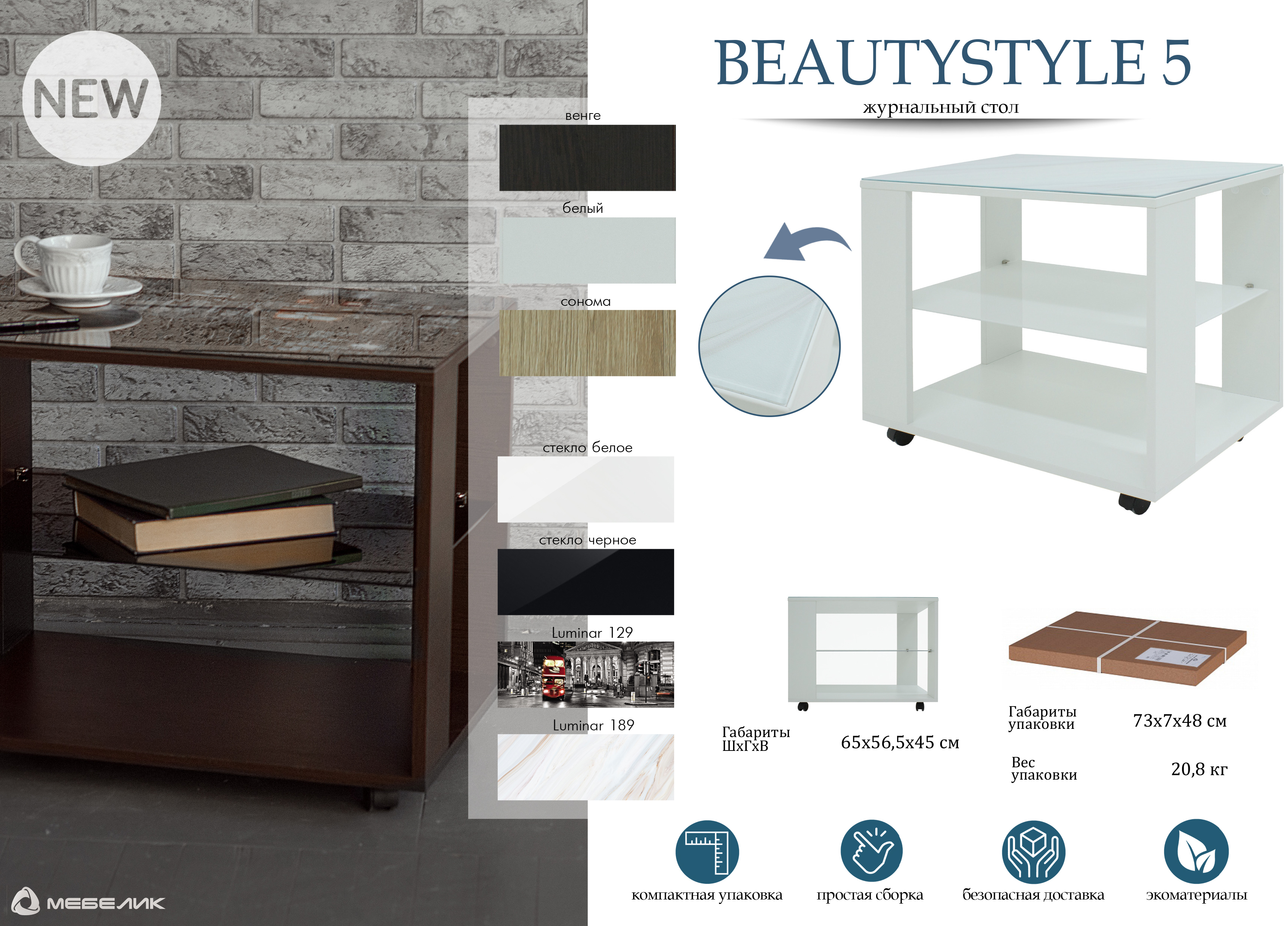Журнальный стол, Приставной столик Мебелик BeautyStyle 5, 65х45х56.5 см