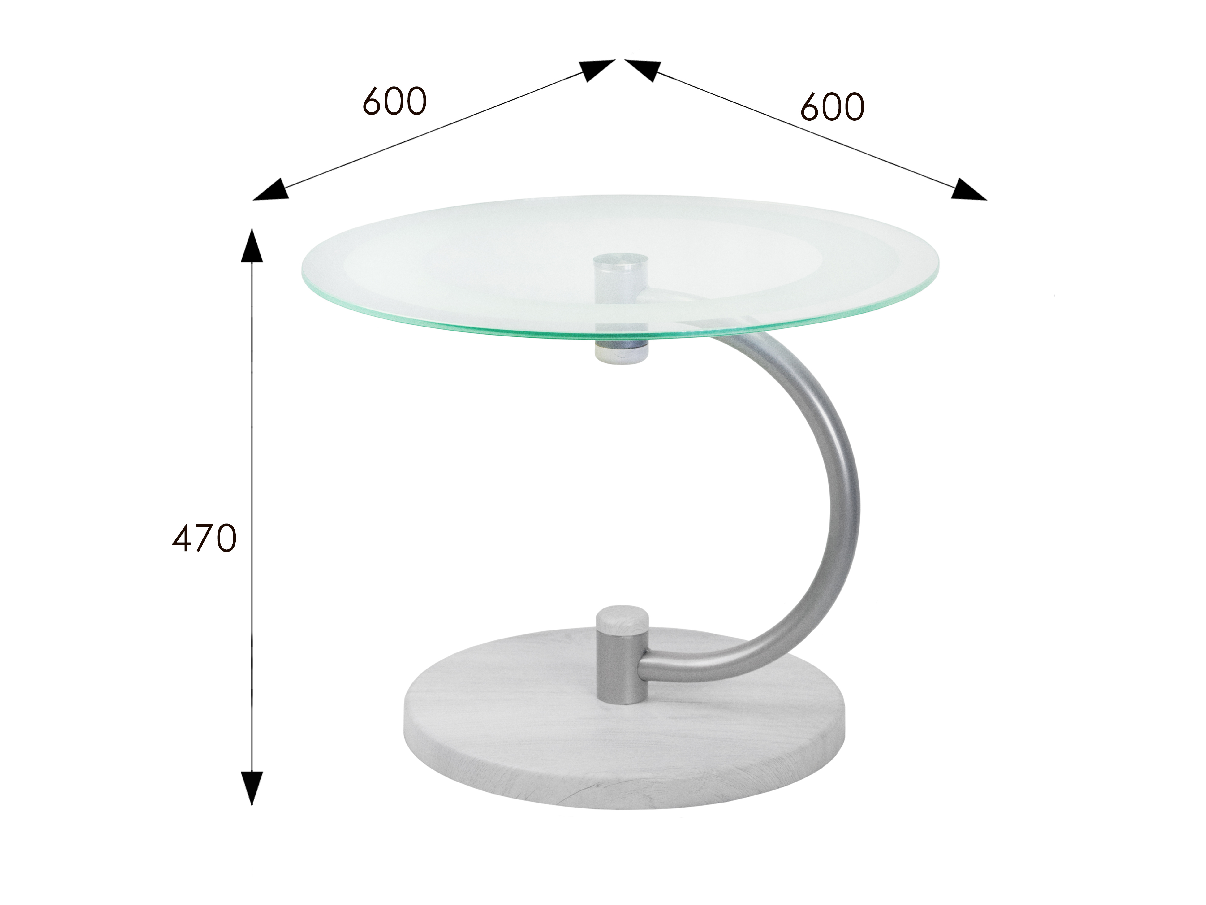 Журнальный стол Мебелик Дуэт 13Н металлик/дуб дымчатый/прозрачное, 60х60х47 см