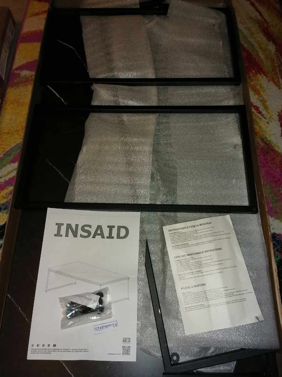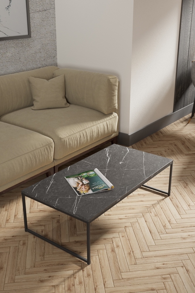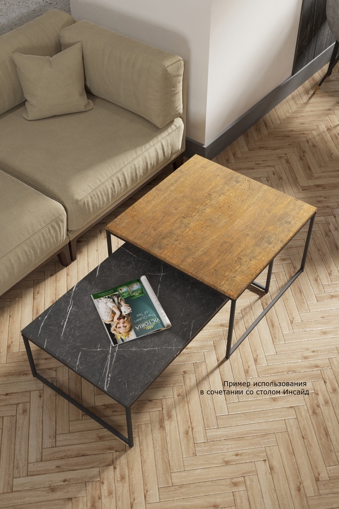Журнальный стол Мебелик Инсайд белый мрамор/черный, 102х54.5х30 см