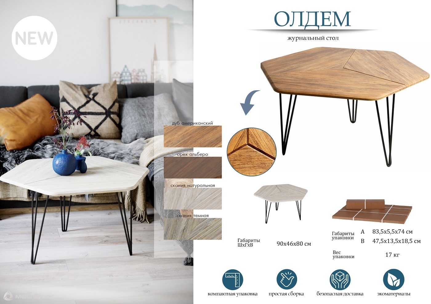 Журнальный стол Мебелик Олдем, 90х80х46 см