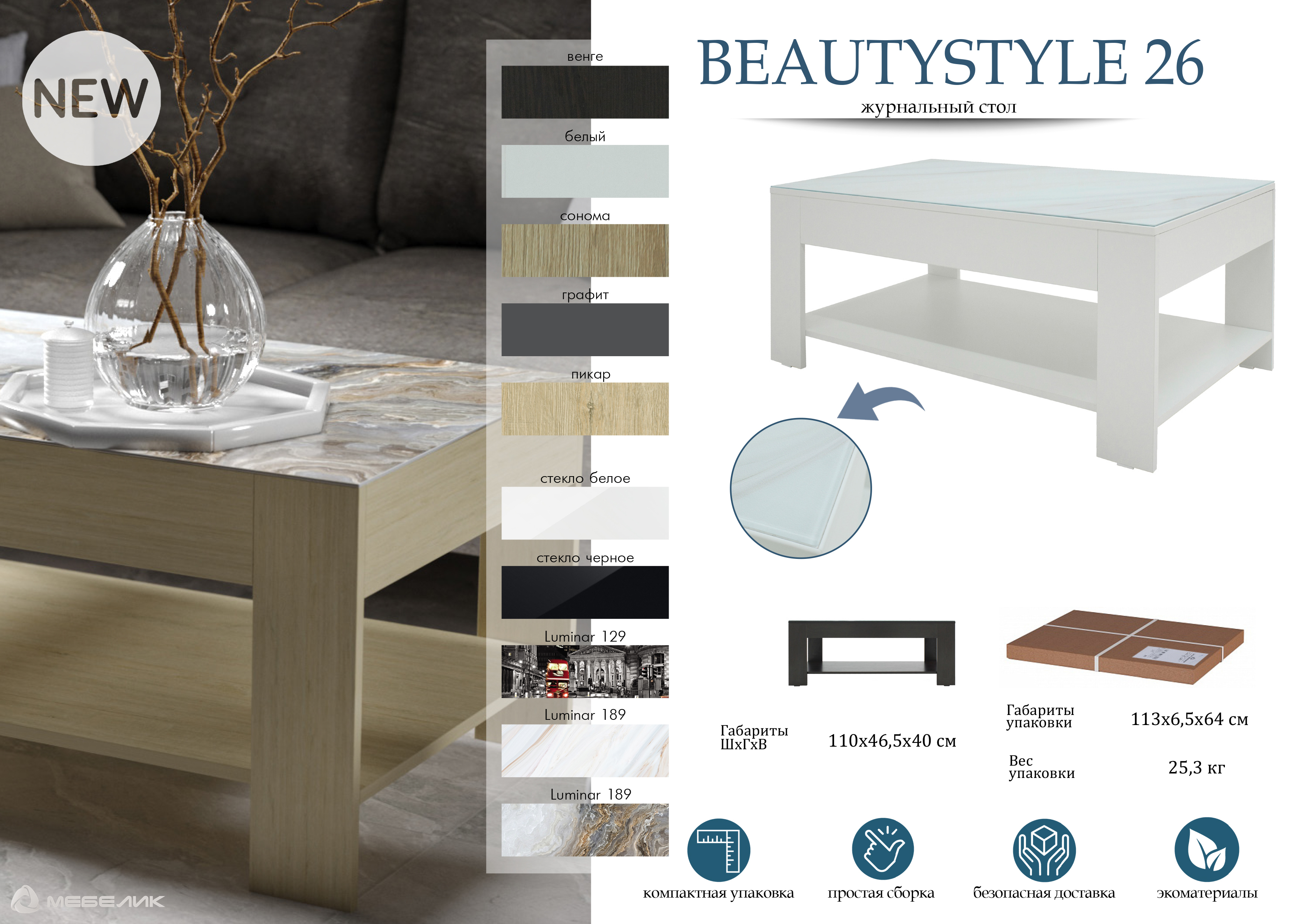 Журнальный стол Мебелик BeautyStyle 26, 110х60х46 см
