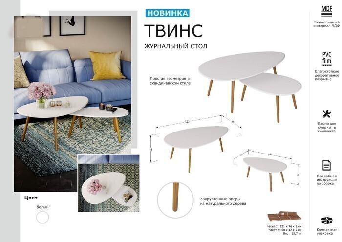 Журнальный стол Мебелик Твинс, 120х70х46 см