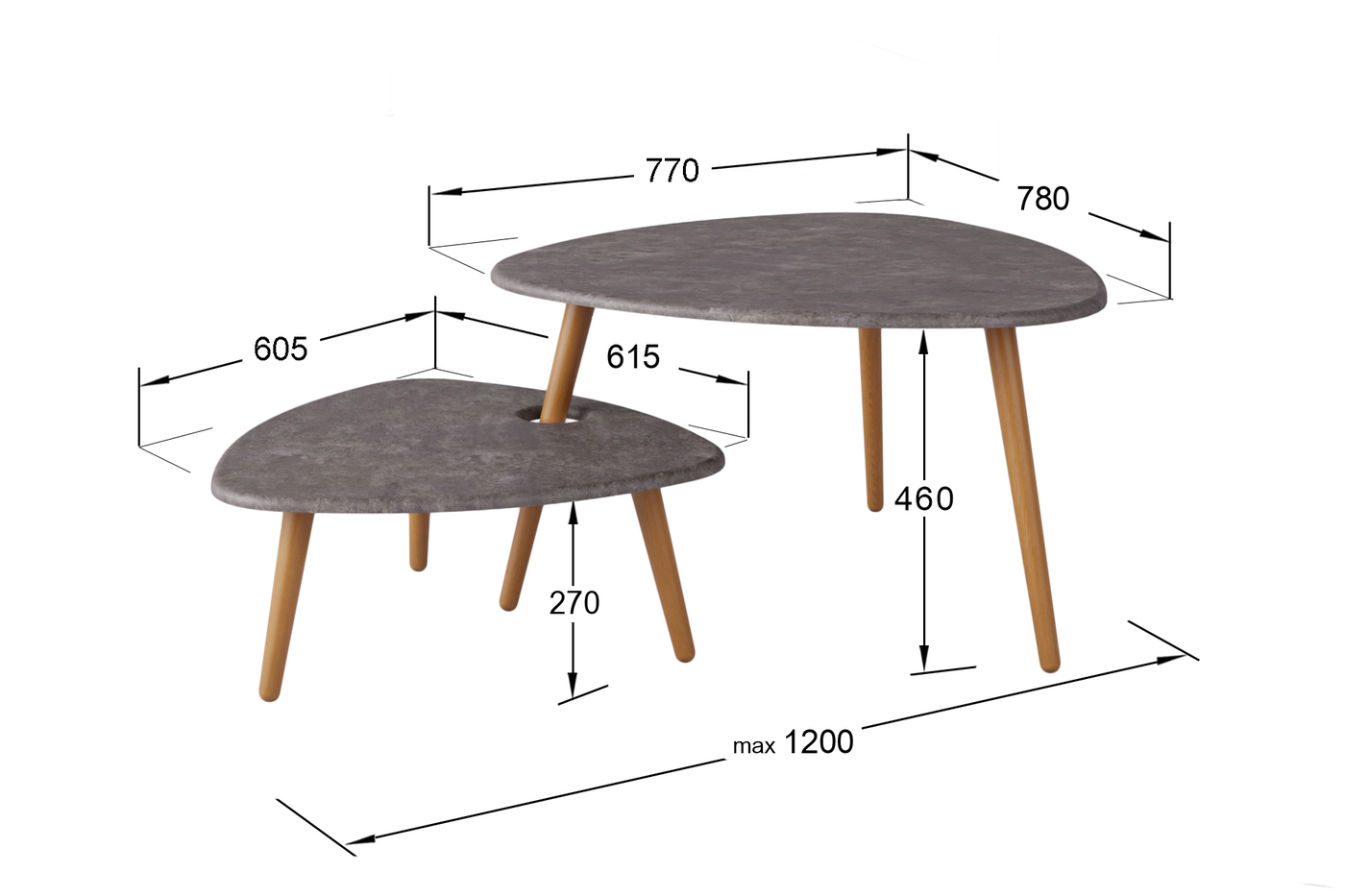 Журнальный стол, Комплект журнальных столиков Мебелик Стилгрей серый бетон/дуб сонома, 120х78х46 см