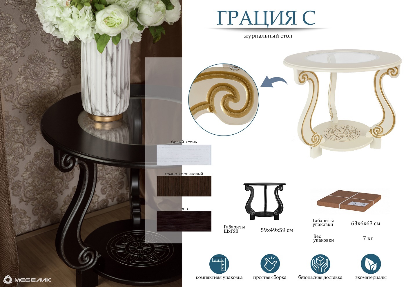 Журнальный стол Мебелик Грация (С), 59х59х49 см