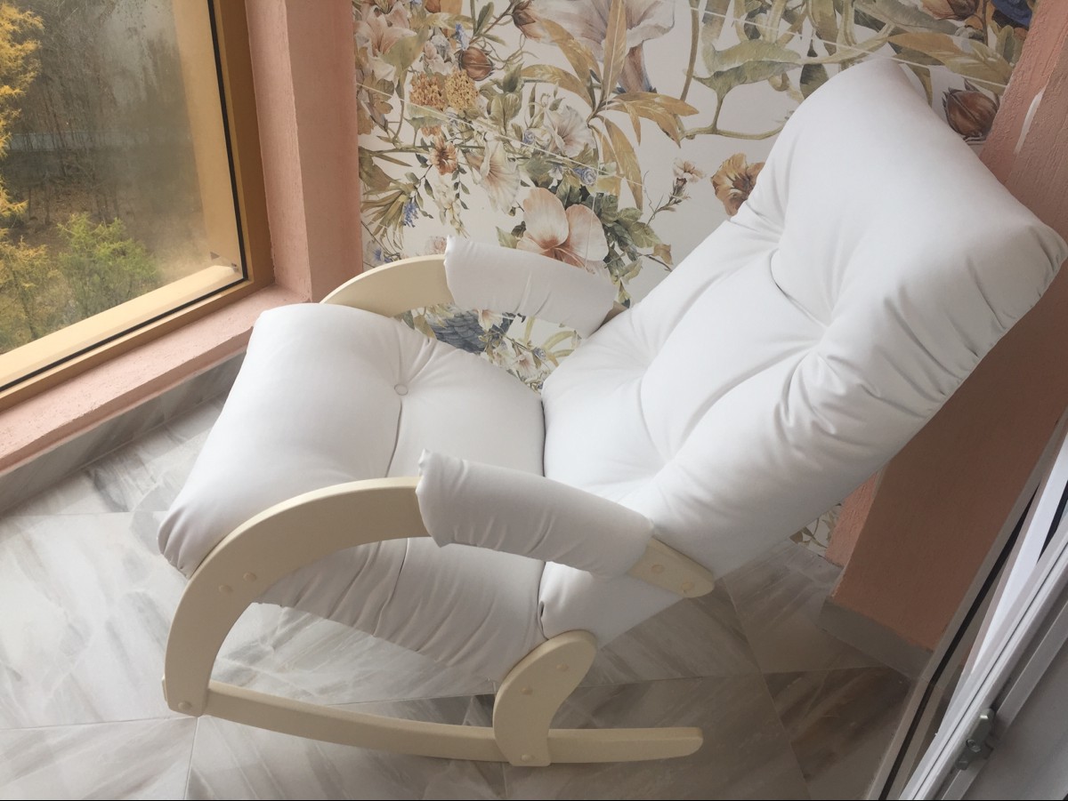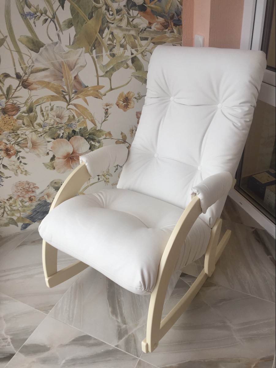 Кресло-качалка Консул экокожа белый, каркас дуб шампань, 60х103х87 см