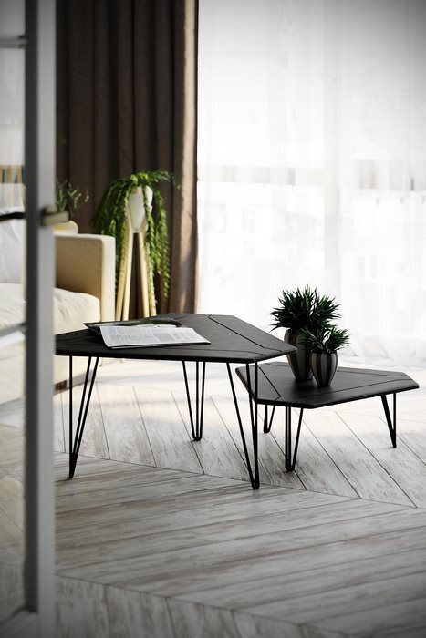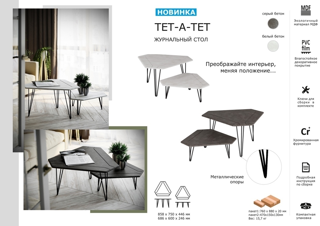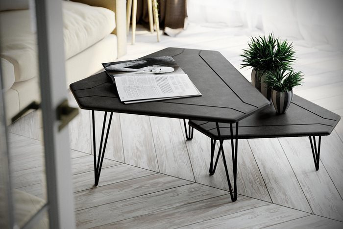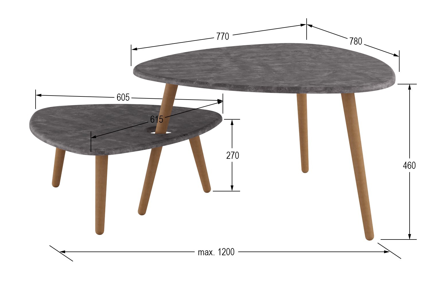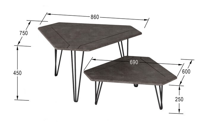 Журнальный стол, Комплект журнальных столиков Мебелик Стилгрей серый бетон/дуб сонома, 120х78х46 см
