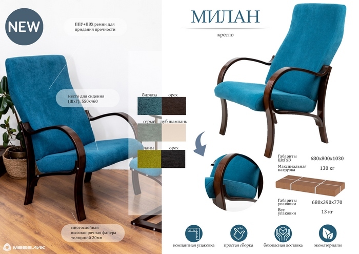 Кресло для отдыха Милан ткань лайм, каркас дуб шампань, 1 шт., 68х80х103 см