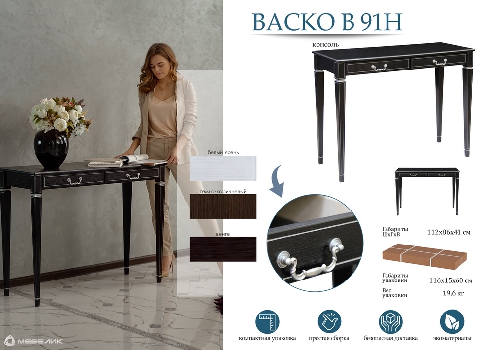 Консоль, Туалетный столик В 91н, 112х41х86 см