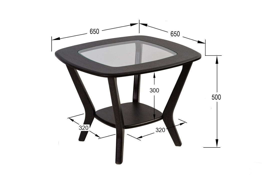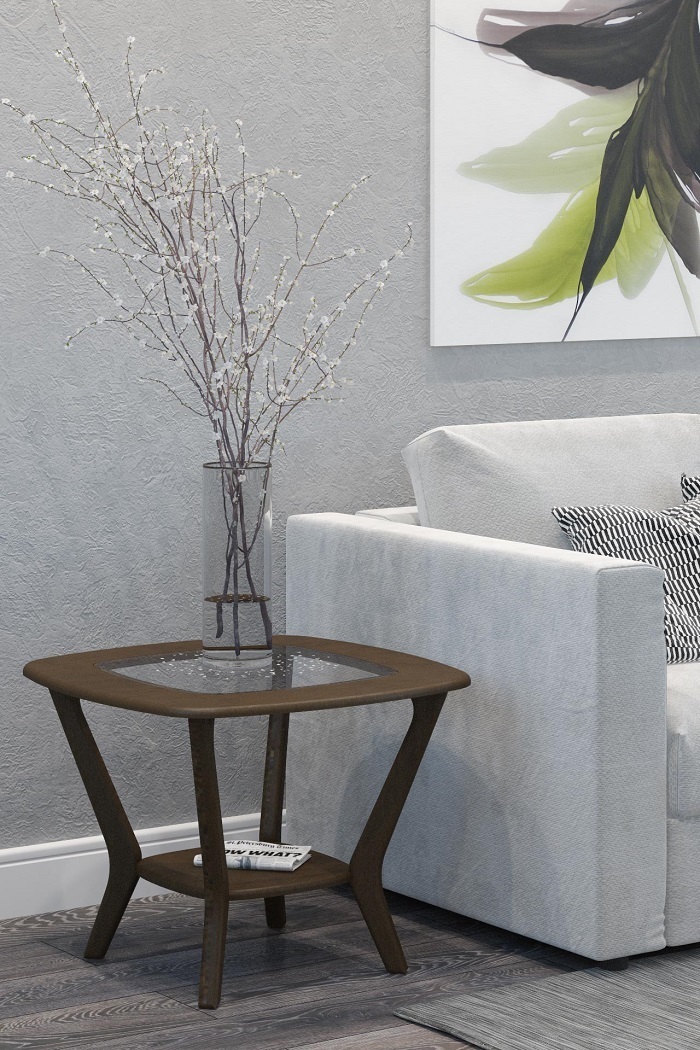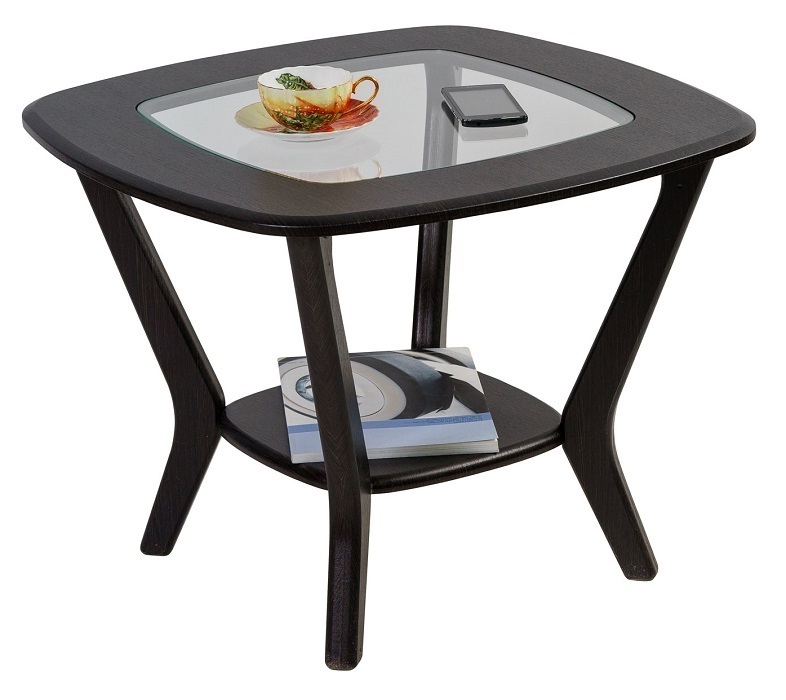 Журнальный стол Мебелик Мельбурн со стеклом венге/венге, 65х65х50 см