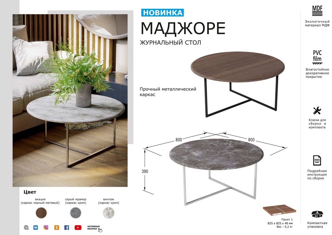Журнальный стол Мебелик Маджоре, 80х80х39 см