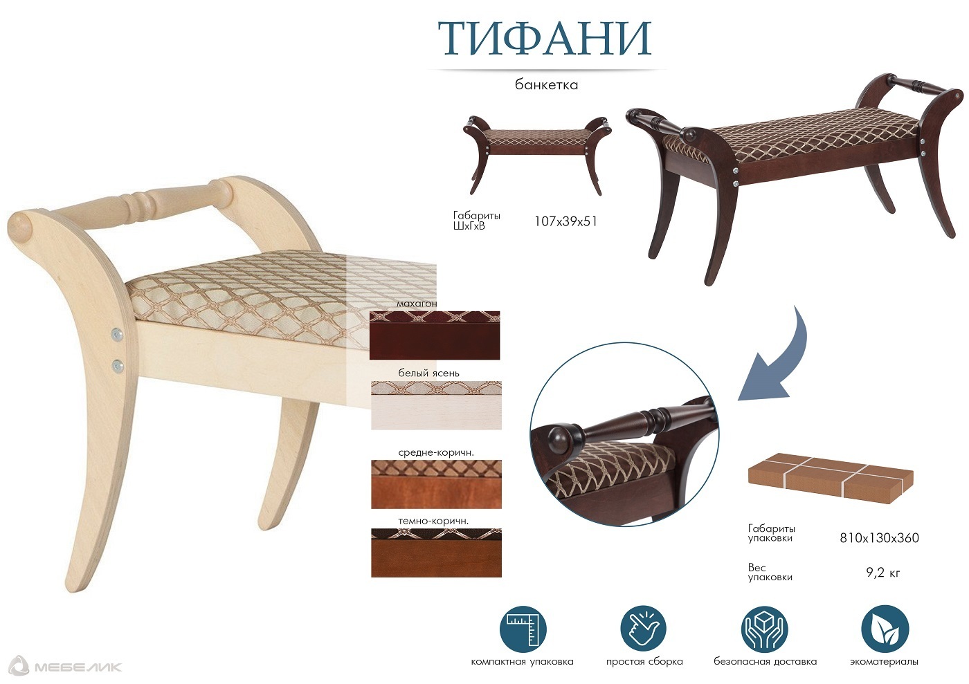 Банкетка Тифани, Жаккард, 107х39х51 см
