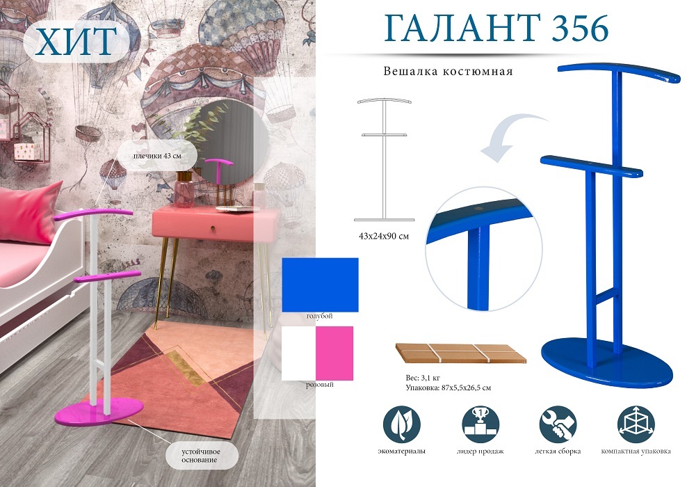 Вешалка напольная Мебелик, 90 см х 24 см х 43 см