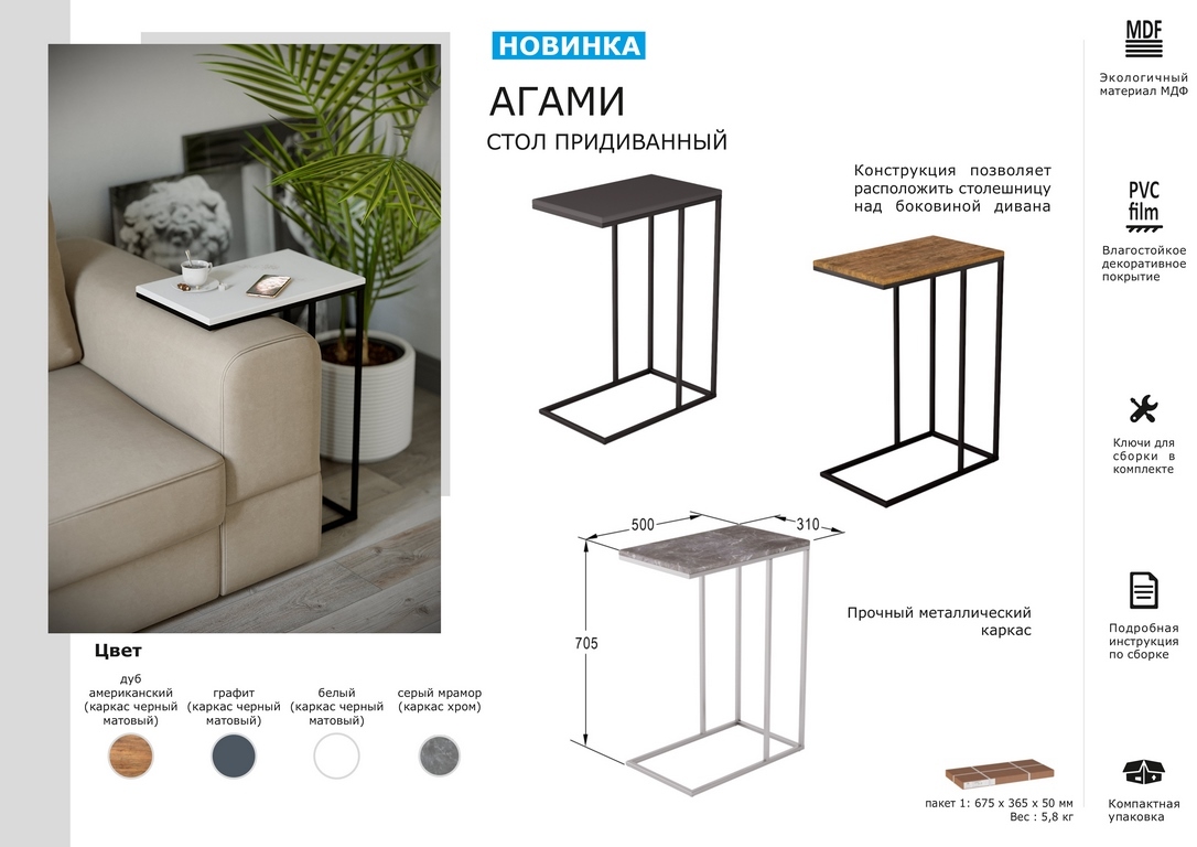 Журнальный стол Мебелик Эль СЖ-01, 90х60х48 см