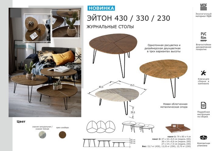 Журнальный стол Мебелик Эйтон 330, 80х75х35,5 см