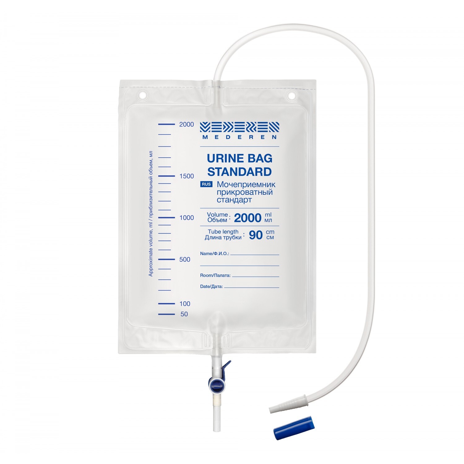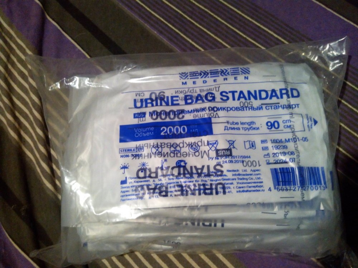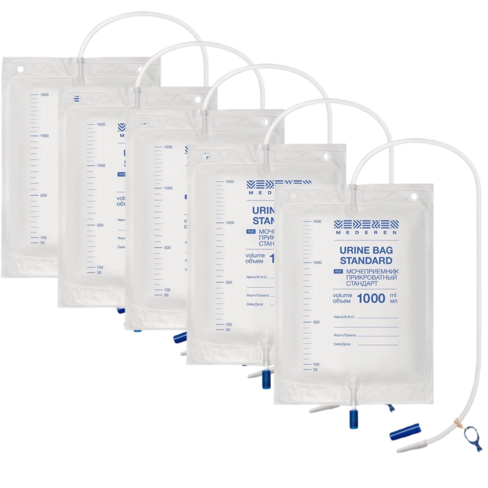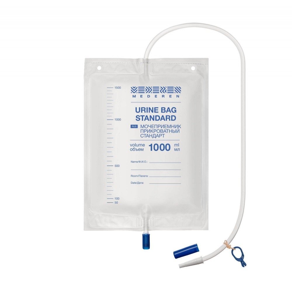 Мочеприемник прикроватный MEDEREN стандарт 1000мл 5 штук, трубка 90 см