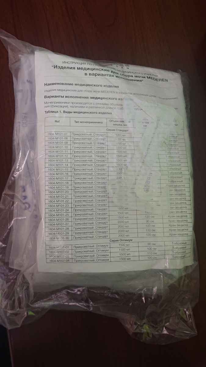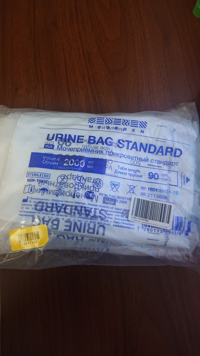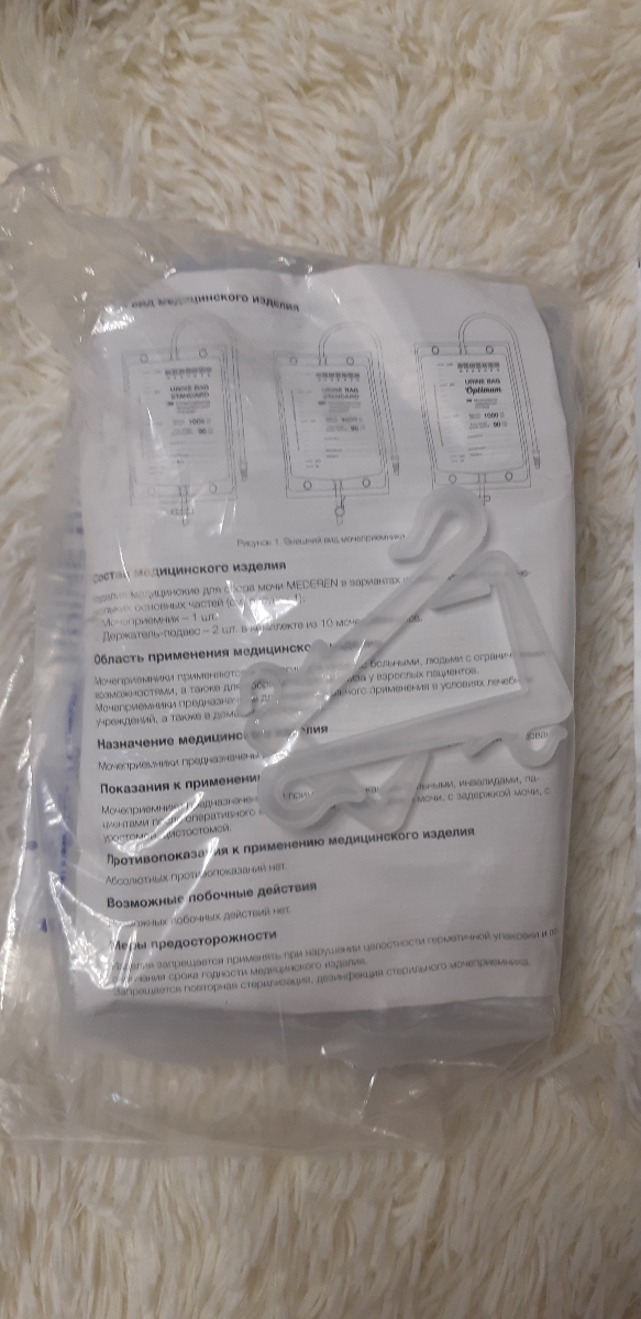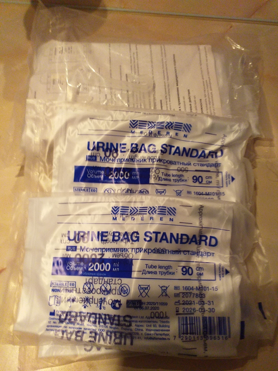 Мочеприемник прикроватный MEDEREN стандарт 1000мл 5 штук, трубка 90 см