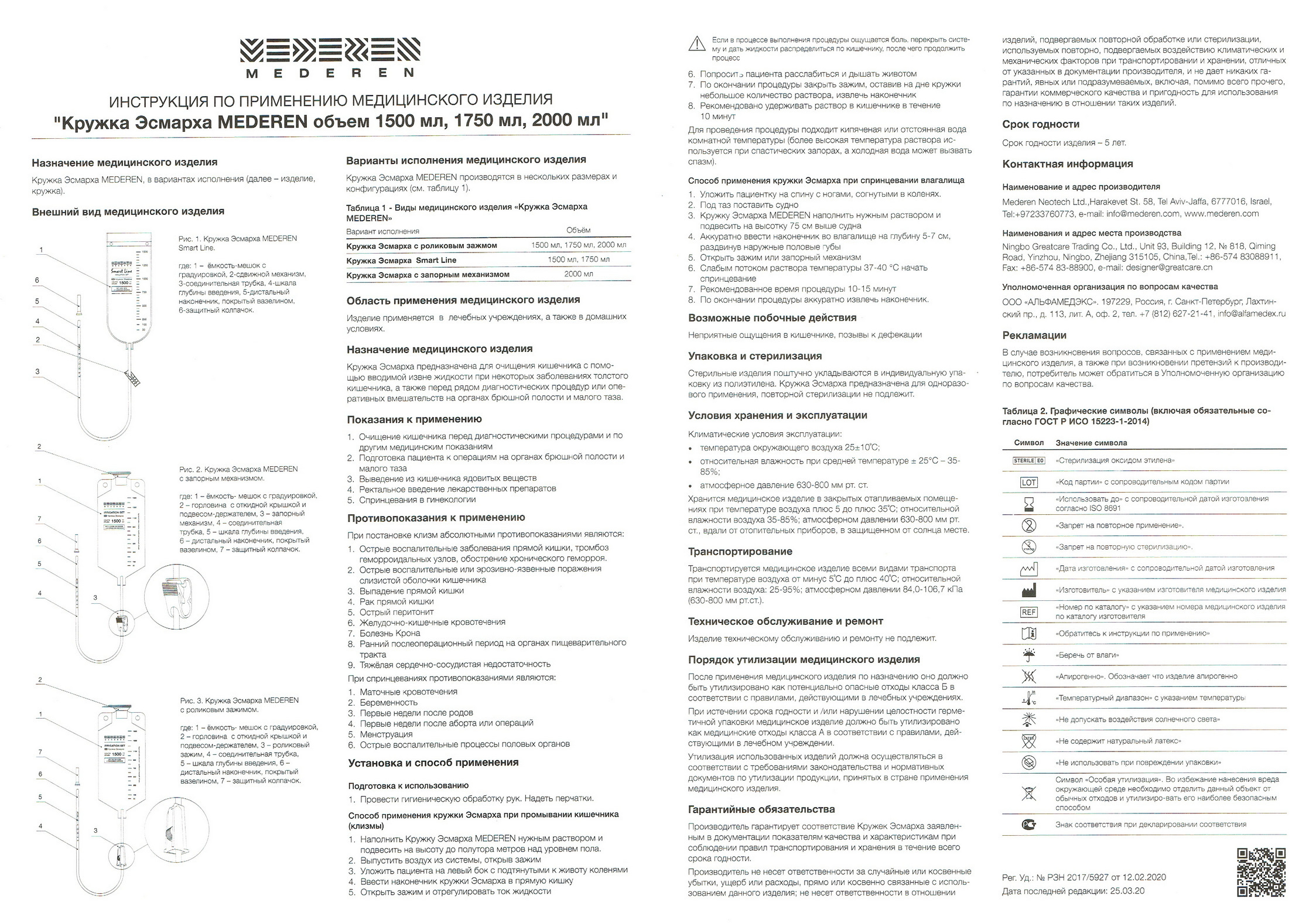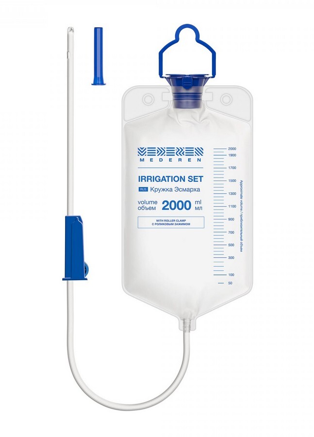 Кружка Эсмарха (клизма) 2000 мл MEDEREN одноразовая стерильная с роликовым зажимом