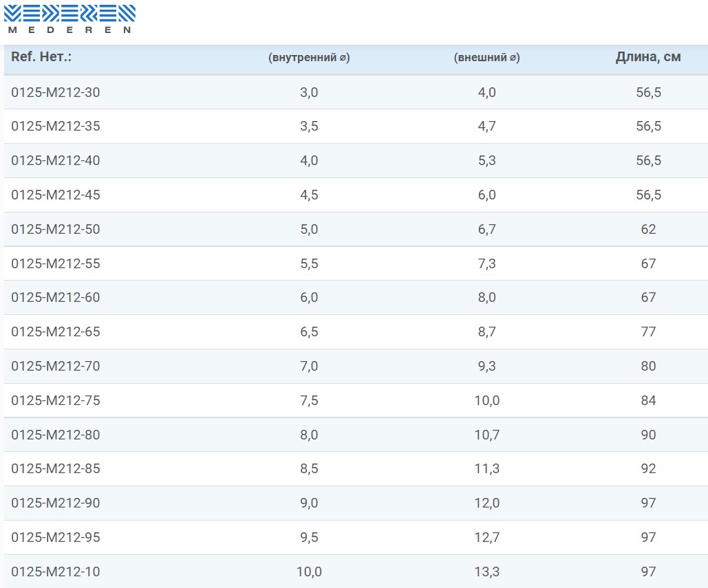 Трубка трахеостомическая с манжетой MEDEREN (МЕДЕРЕН), размер 9,5 (Израиль), арт. 0125-М212-95 1шт.