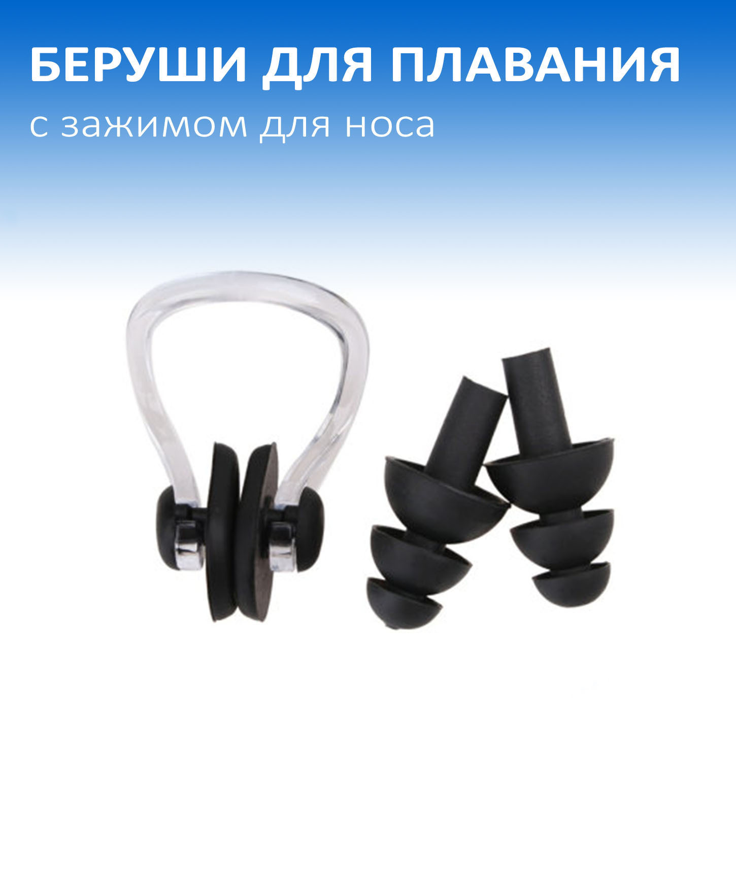 Беруши для плавания с зажимом для носа / Беруши водонепроницаемые для бассейна