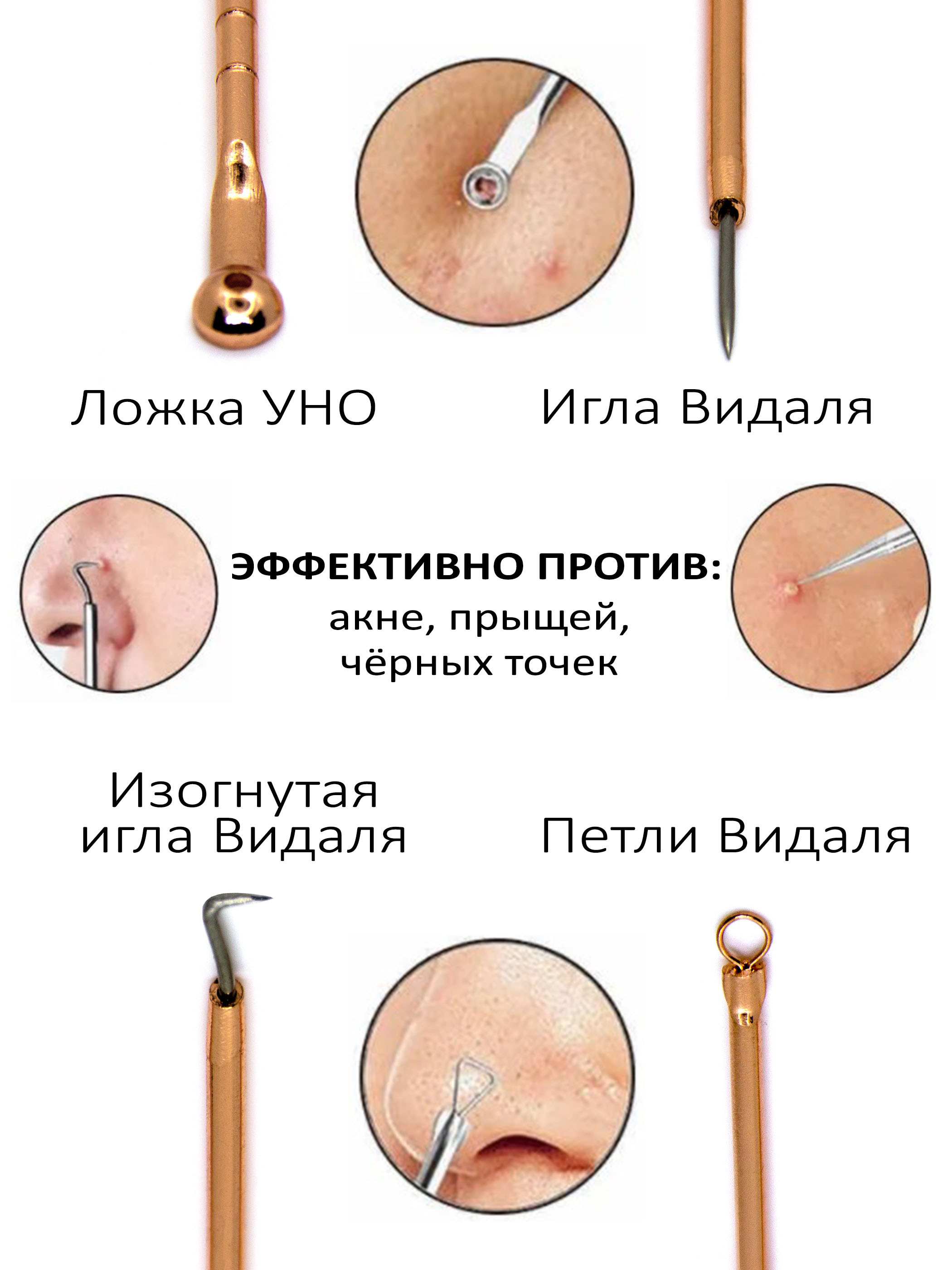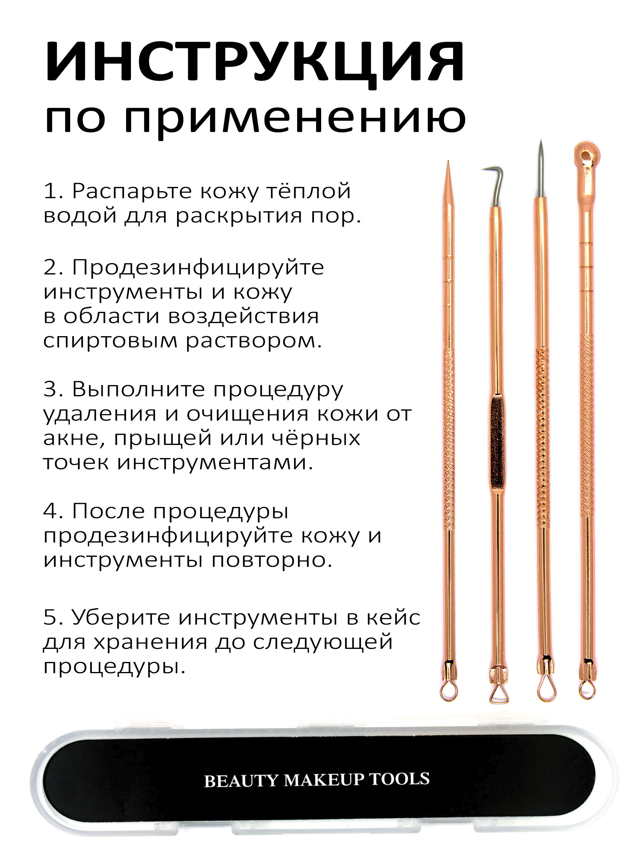 Medical Pro Косметологический инструмент Набор для чистки лица / 4 инструмента / Косметологический набор для лица