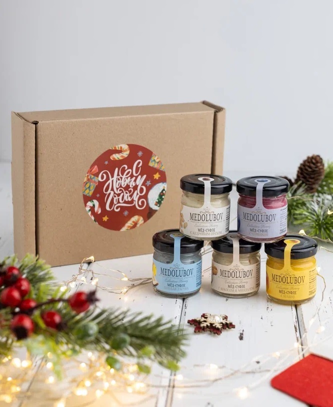 Новогодний подарочный набор крем-мёда "Ассорти вкусов", Русский мёд, 40 г., 5 штук
