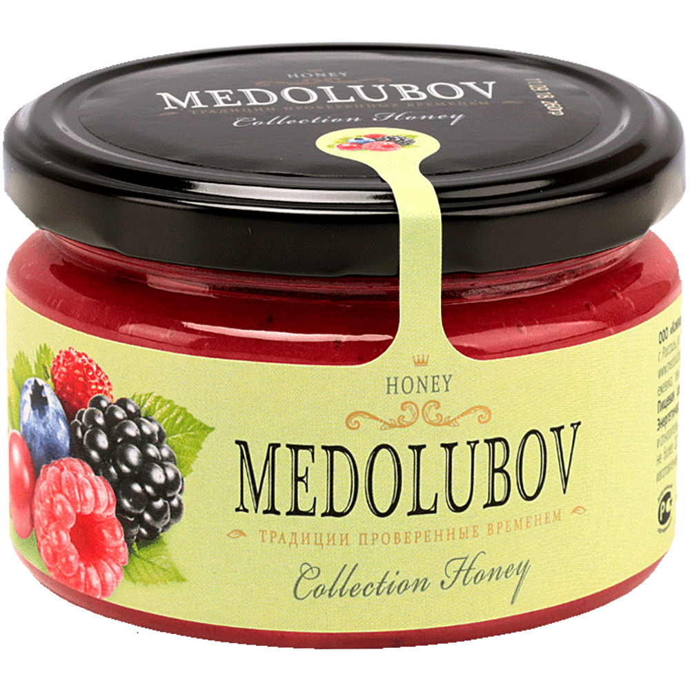 Крем-мёд Медолюбов с малиной и земляникой (бугель) 250 мл (Упаковка из 6 баночек)