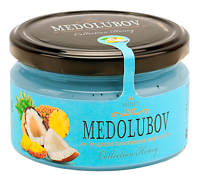 Крем-мёд Медолюбов кокос с миндалем (бугель) 250 мл (Упаковка из 6 баночек)