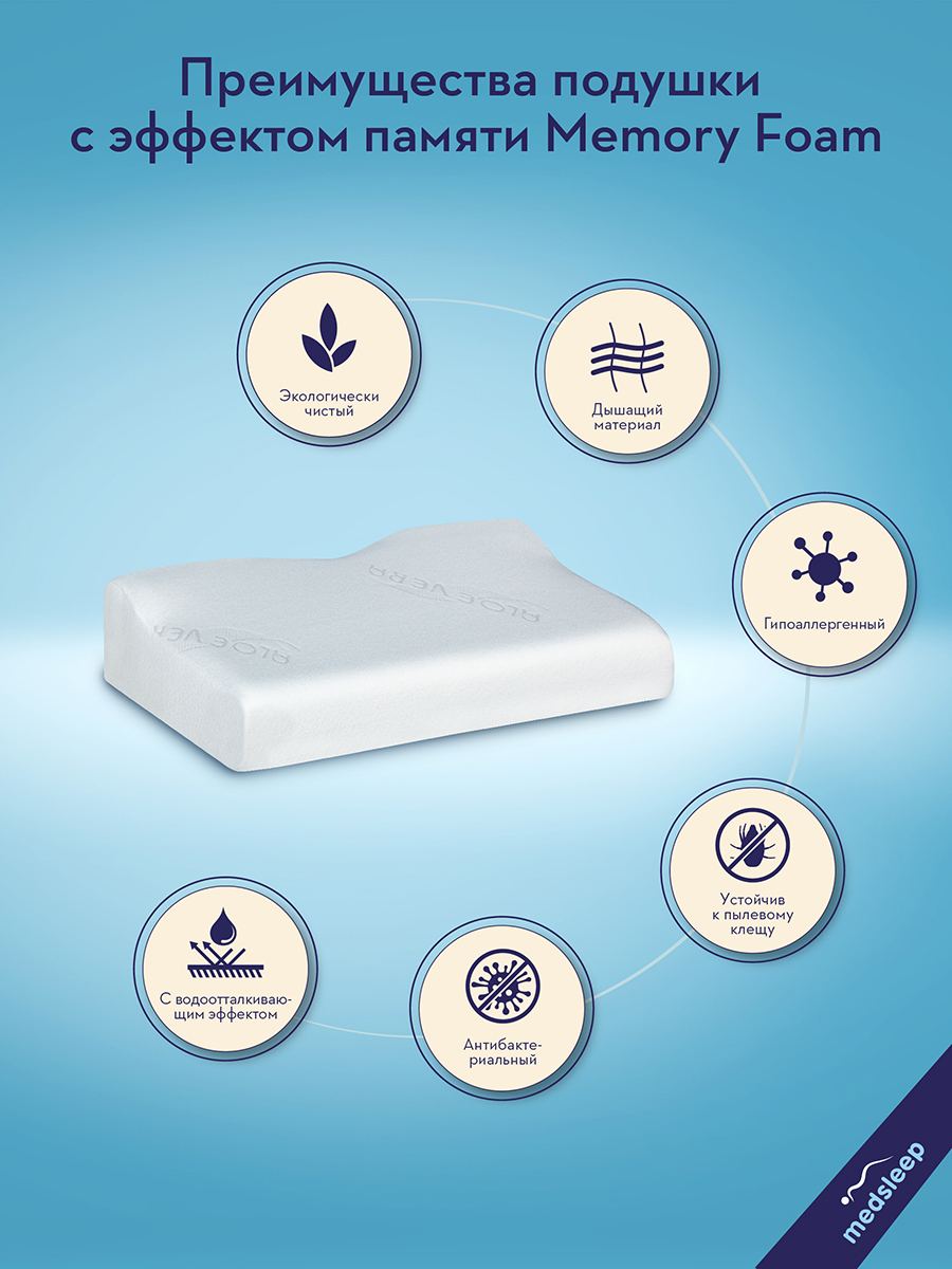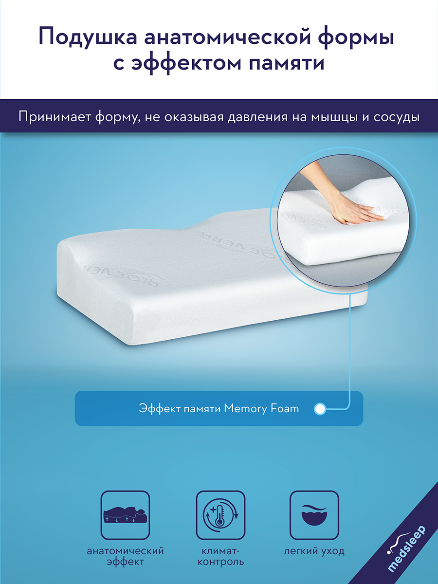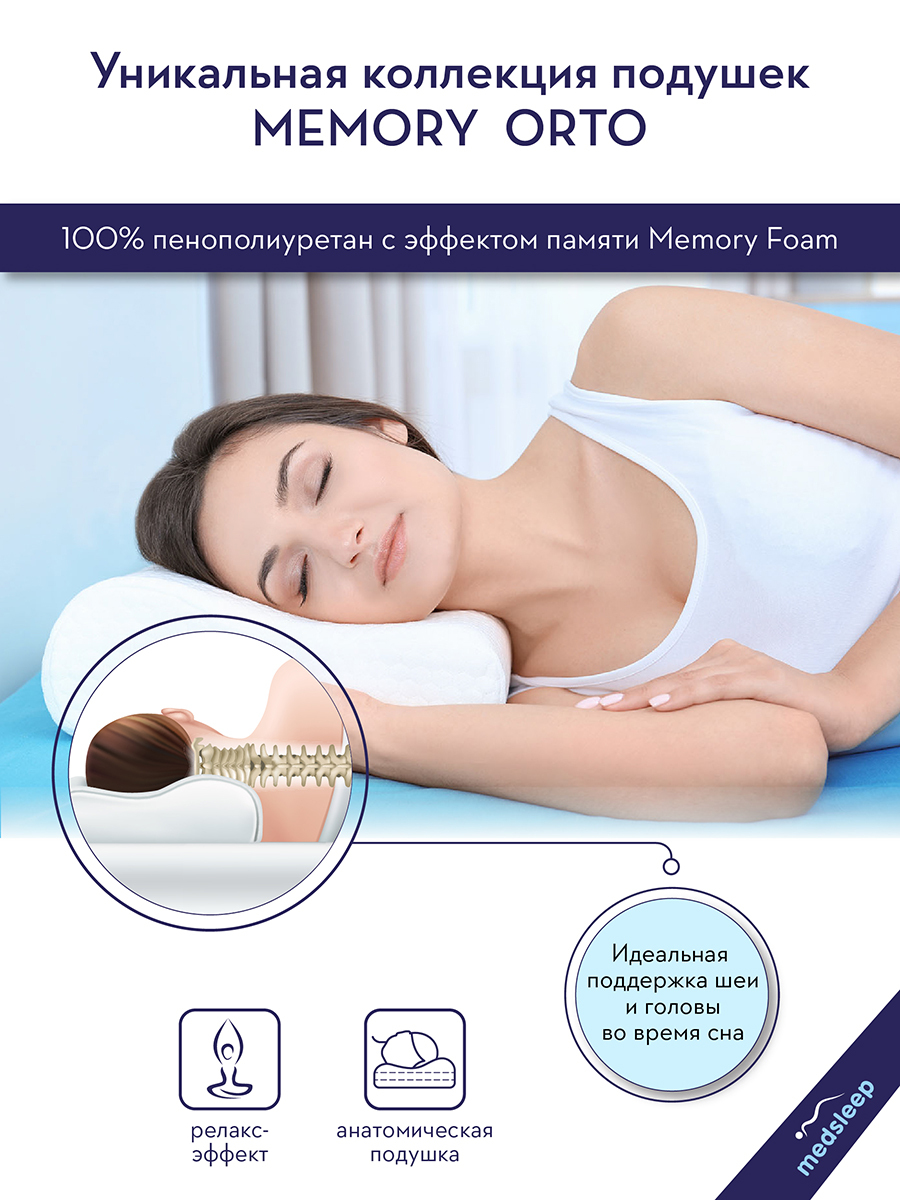 Ортопедическая подушка 45x65см, Medsleep Медслип, 100% полиуретан с эффектом памяти, высота 10 см