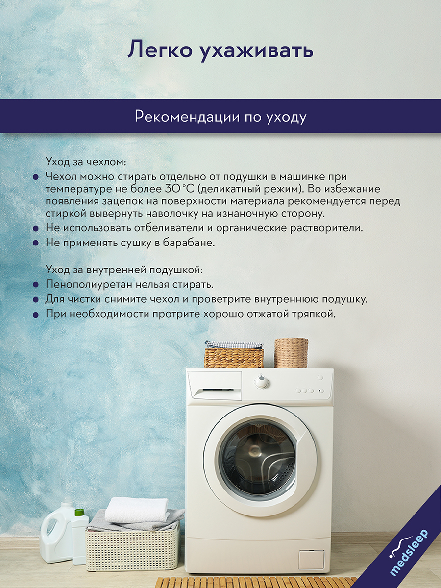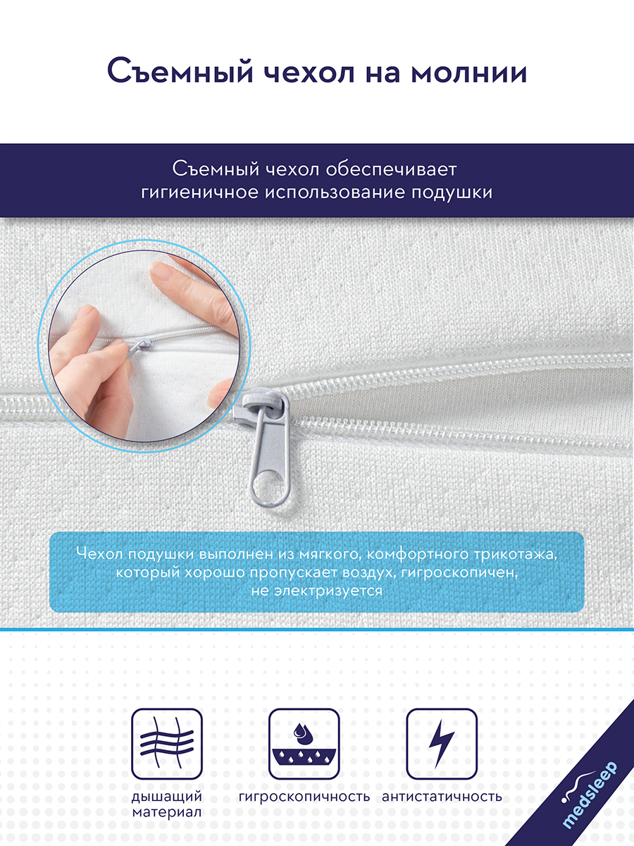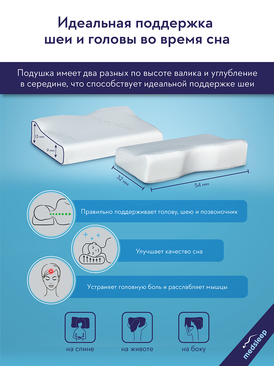 Ортопедическая подушка 45x65см, Medsleep Медслип, 100% полиуретан с эффектом памяти, высота 10 см
