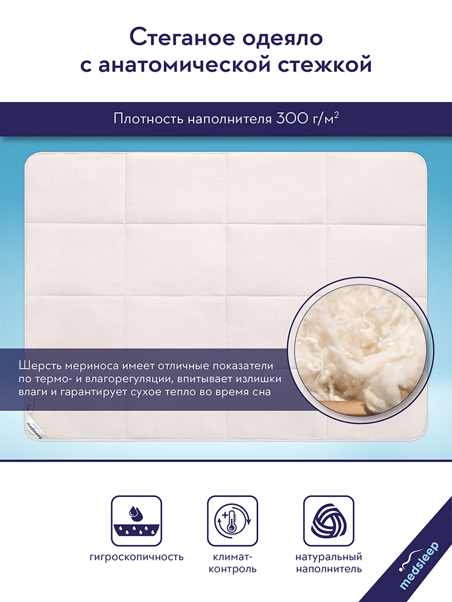 Одеяло Medsleep DAO-Зимнее 500 г/м2 220x240, Зимнее, с наполнителем Бамбуковое волокно
