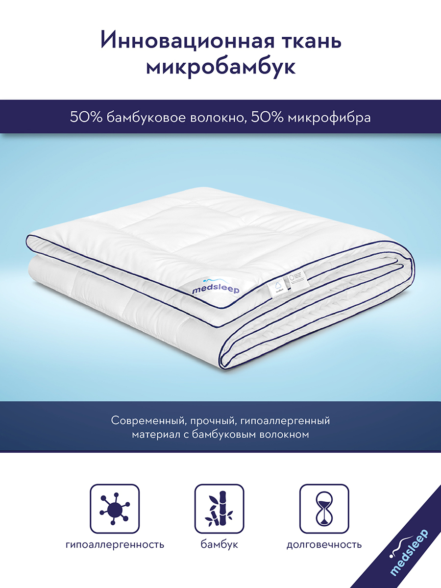 Одеяло Medsleep DAO 240 гр/м2 Евро макси, 220x240, Всесезонное, с наполнителем Бамбуковое волокно
