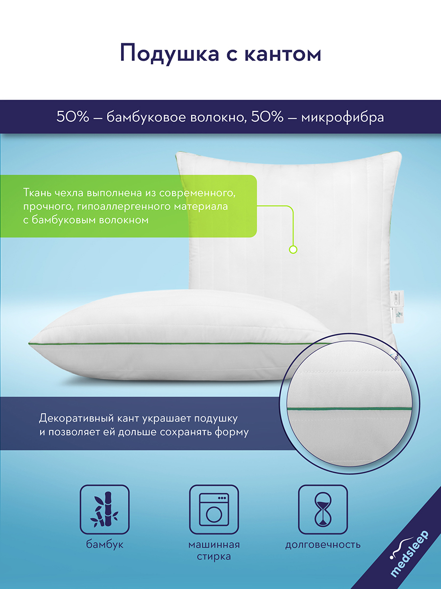 Чехол для подушки Medsleep, FRESH SLEEP 330г/м2, на молнии, 50x70 см 1шт, бело/голубой