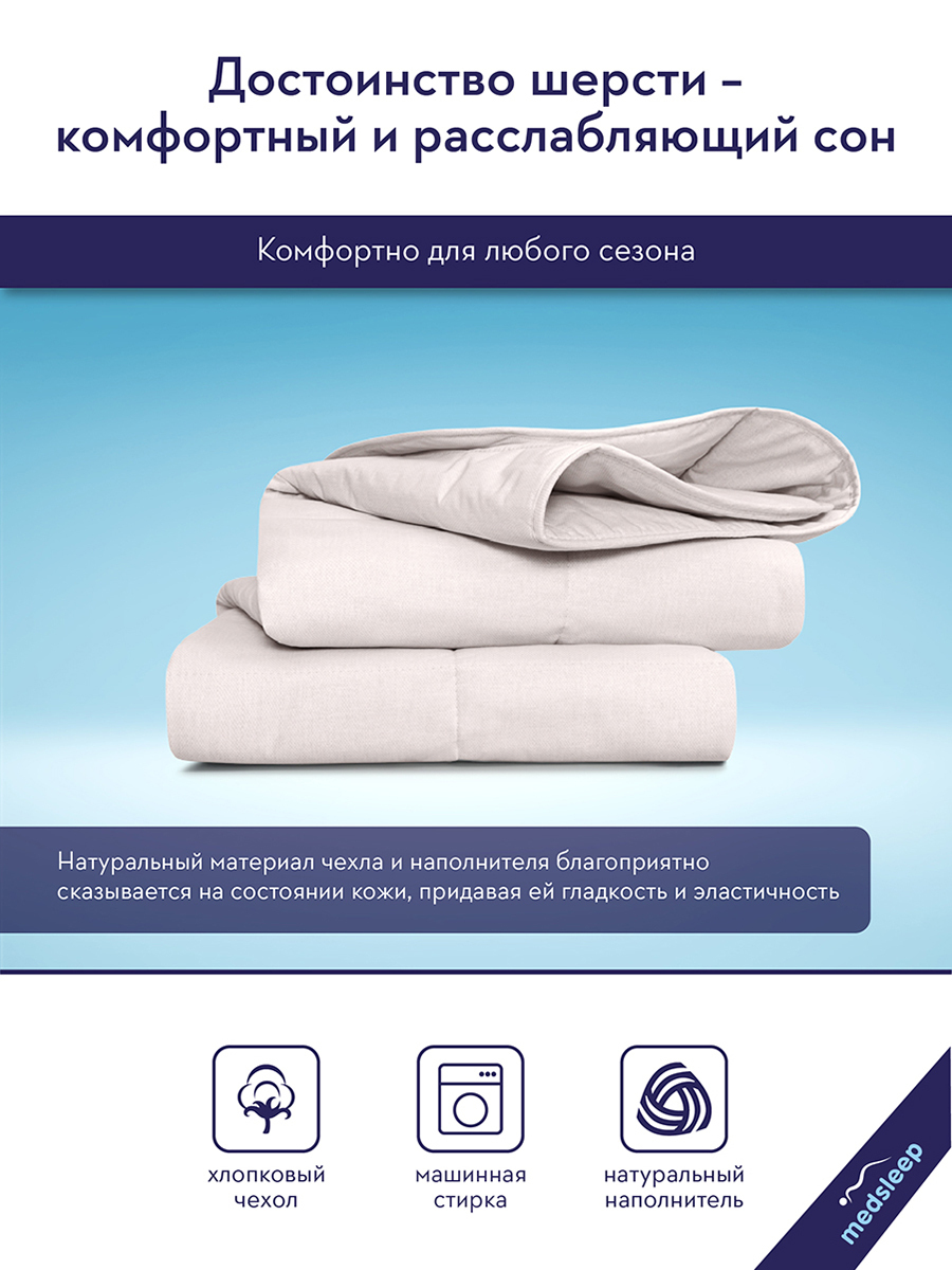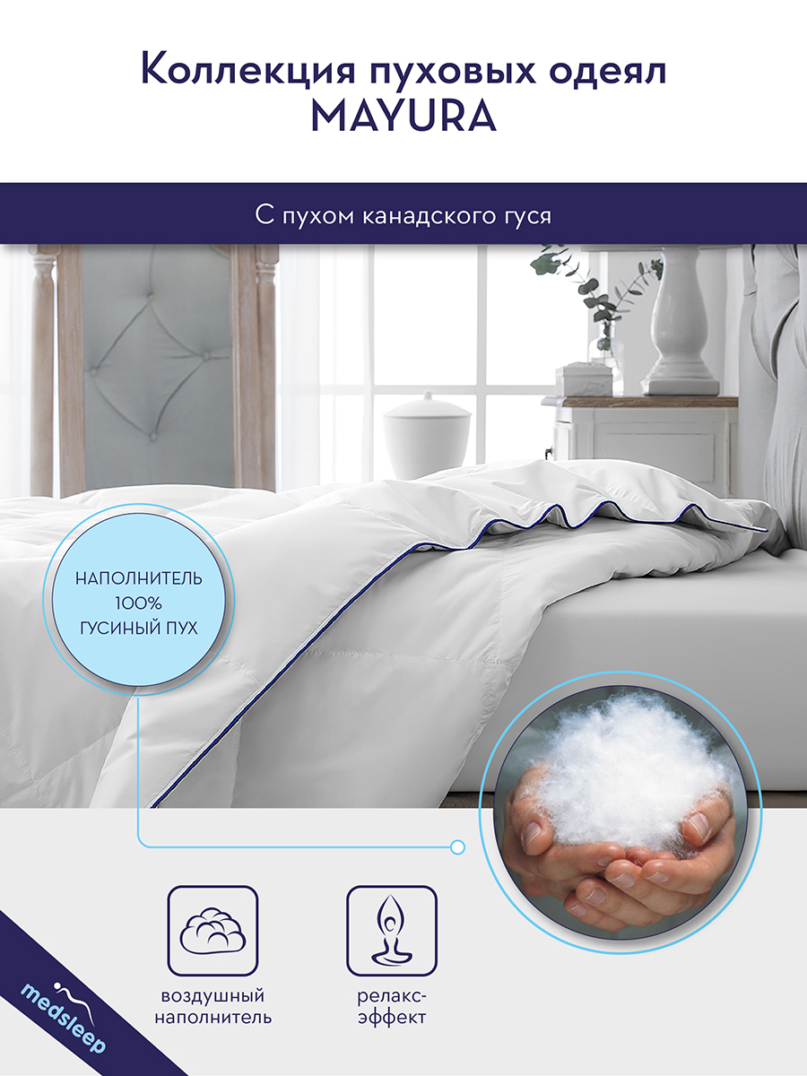 Одеяло Medsleep 2-x спальный 175x200 см, Всесезонное, с наполнителем Гусиный пух