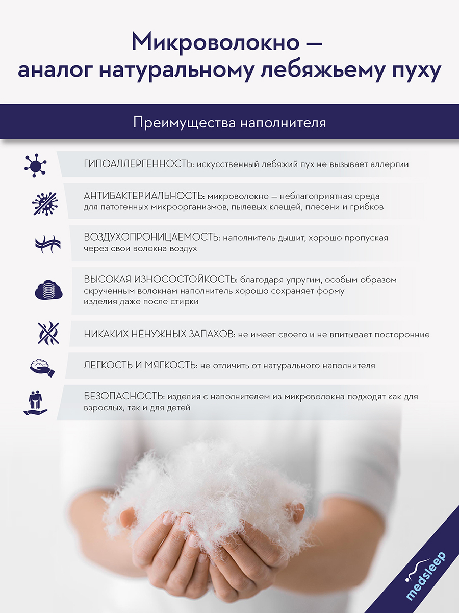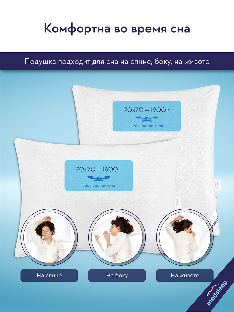 Подушка Medsleep пуховая LANDAU, пух Сибирского гуся 50% перо 50% Гусиный пух, Перо, 50x70 см