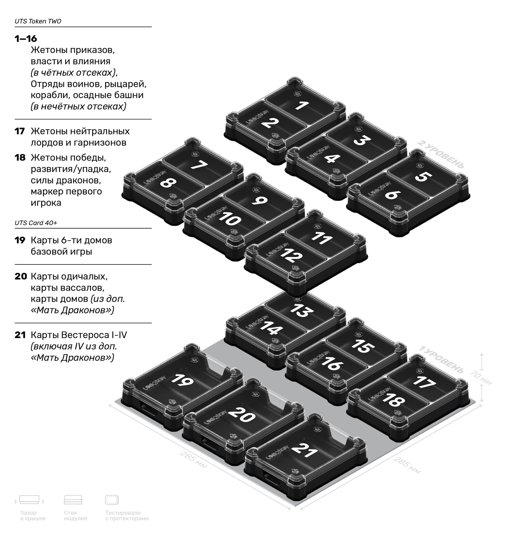 UTS Token ONE (1 секция) набор из 5-ти органайзеров для игр, хранения мелочей, фишек, жетонов, монет